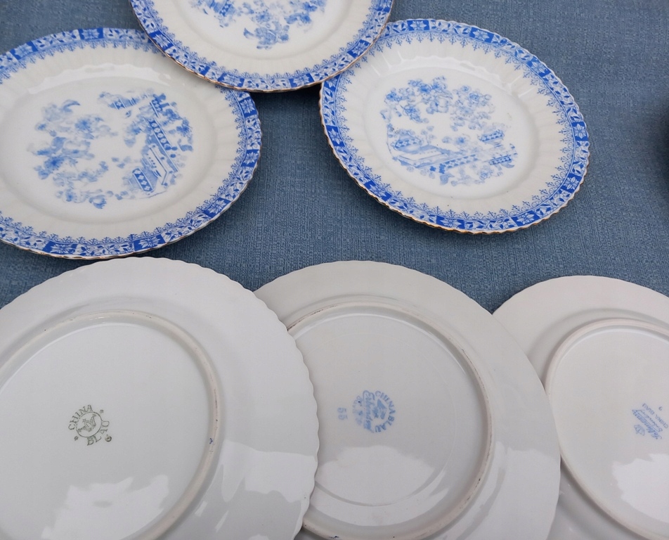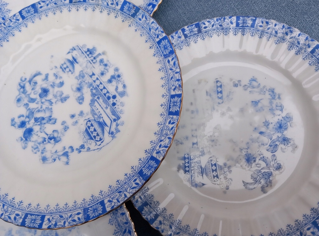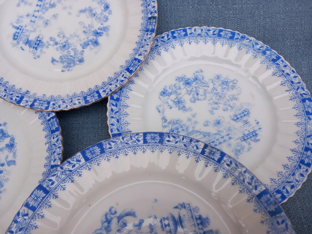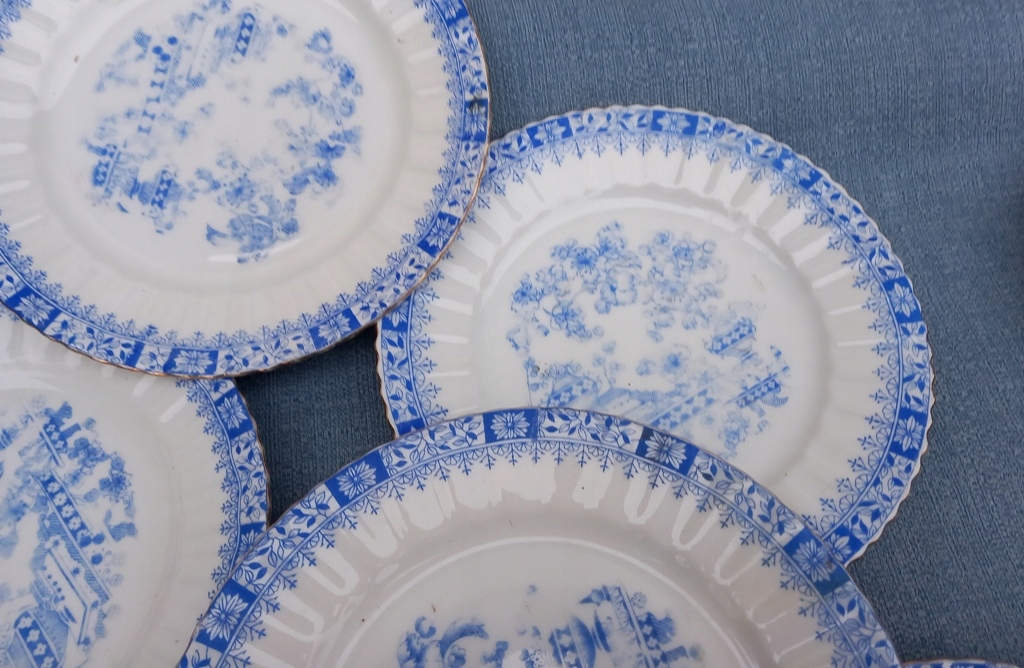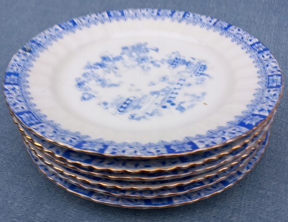 Набор из 6 десертных тарелок из фарфора синего цвета, различные подписи