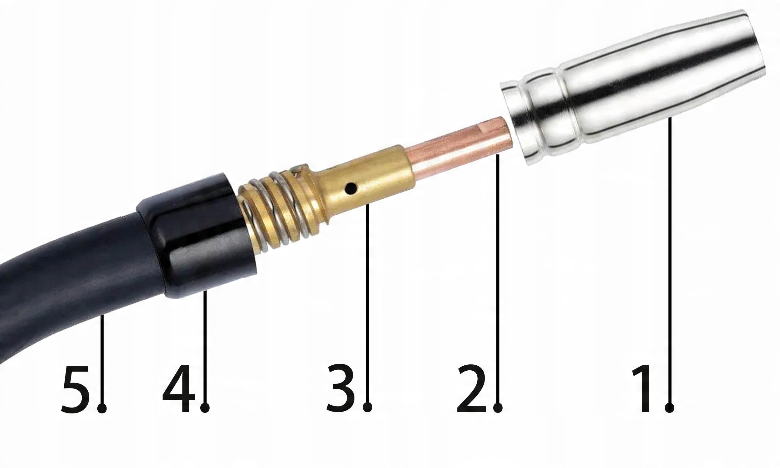 Набор основных элементов, необходимых для оснащения каждой сварочной горелки MIG/MAG стандартом MB 15