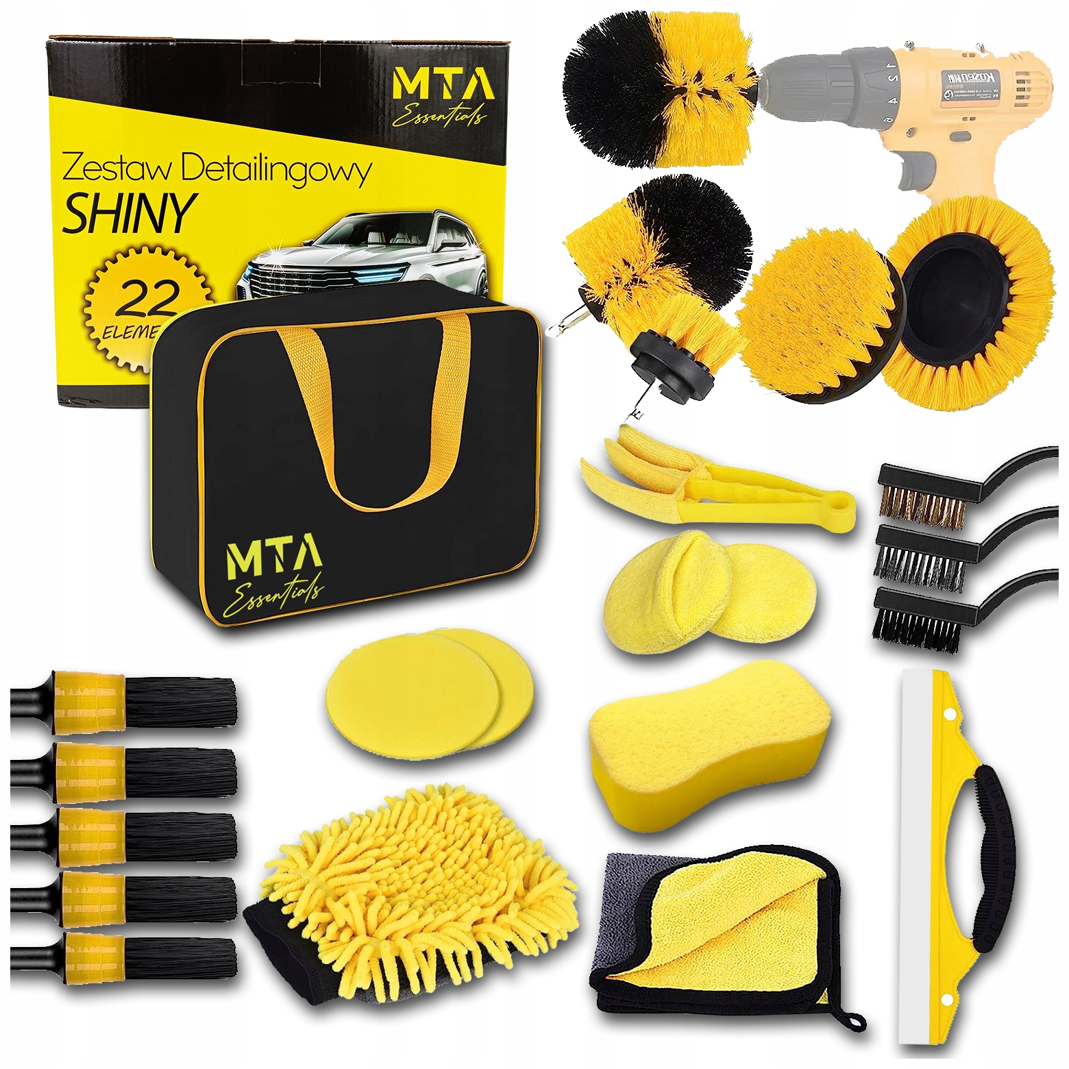 НАБОР СРЕДСТВ ДЛЯ ЧИСТКИ АВТОМОБИЛЯ, 22 ПРЕДМЕТА С УЛУЧШЕННЫМИ НАКЛАДКАМИ ДЛЯ ЩЕТКИ