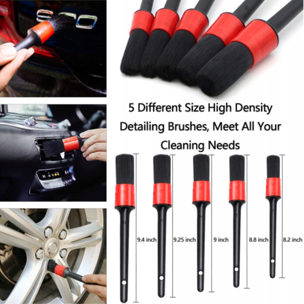 - Щётки для ухода за автомобилем: изготовлены из 100% натуральной щетины, щетки для ухода за автомобилем 5 размеров с чрезвычайно мягкой, гибкой и не выпадающей щетиной. Никакой металлической автомобильной щетки, никакого риска повредить или поцарапать хрупкие колеса. Набор щеток для сухой и влажной чистки автомобиля. Держите щетки для чистки автомобиля под рукой и легко доступными благодаря отверстиям для подвешивания на ручке. Эти автомобильные щетки бывают разных размеров, чтобы удовлетворить все ваши потребности.