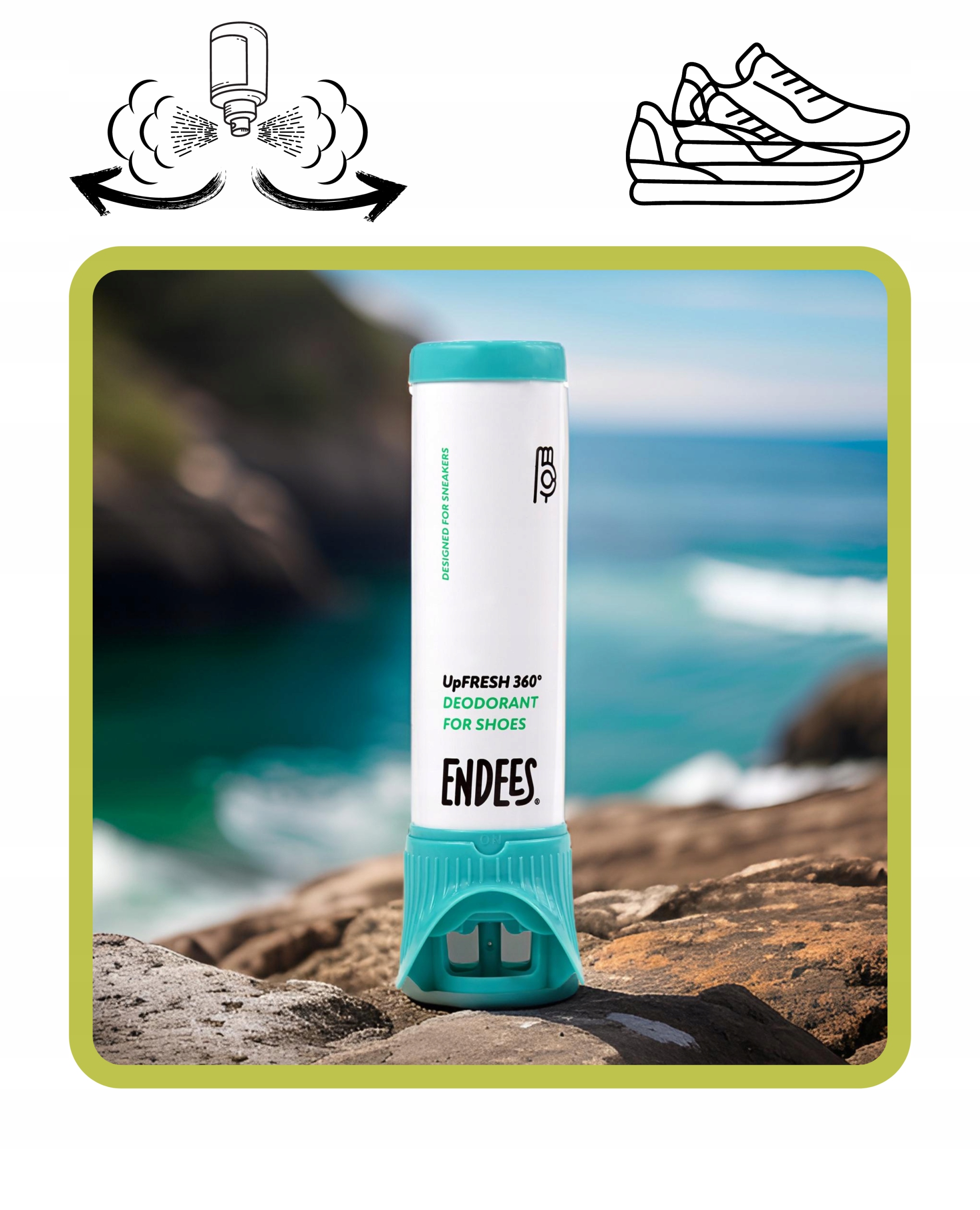 Endees® UpFresh 360° — инновационный дезодорант для обуви, меняющий подход к уходу за обувью. Его усовершенствованная формула нейтрализует неприятные запахи, сохраняя обувь свежей в течение всего дня.