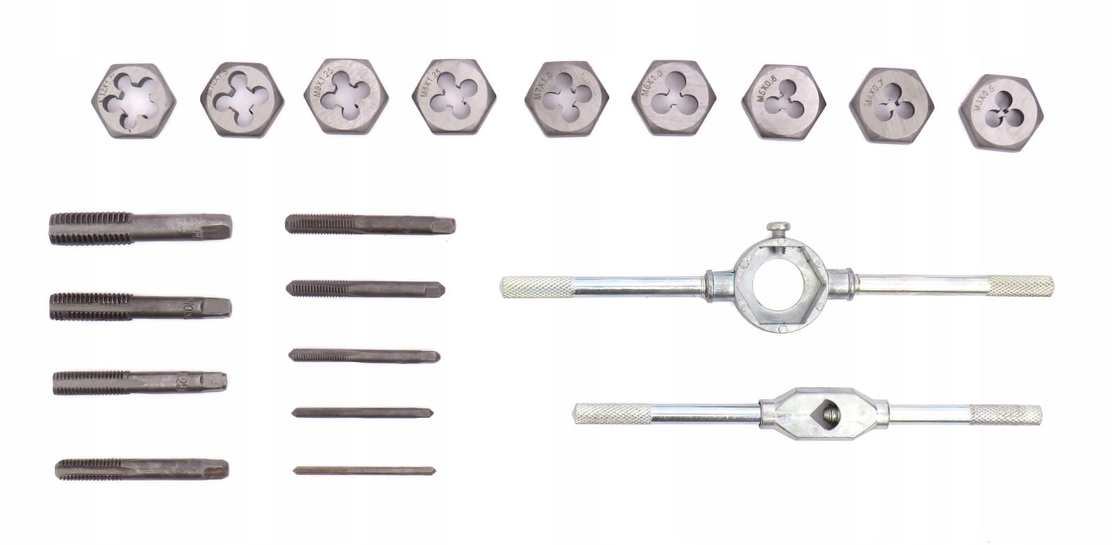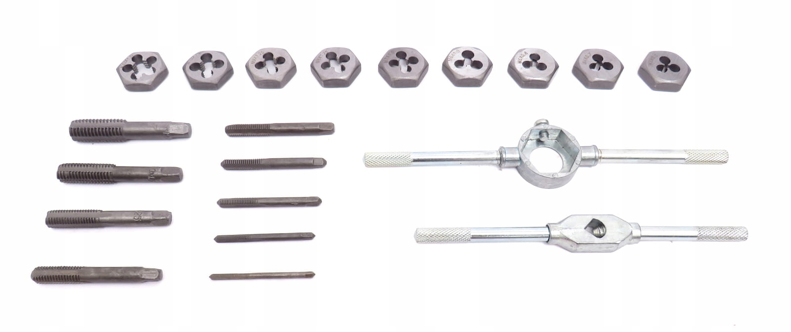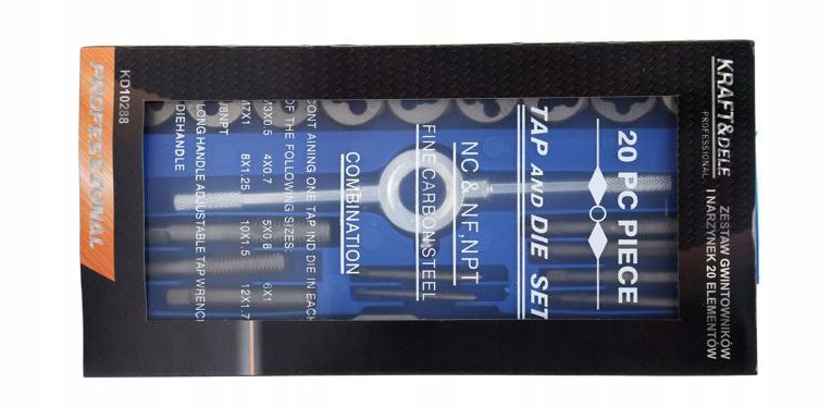 Набор плашек и метчиков упакован в удобную и удобную пластиковую коробку с тиснением, благодаря чему каждый элемент имеет свое постоянное место.