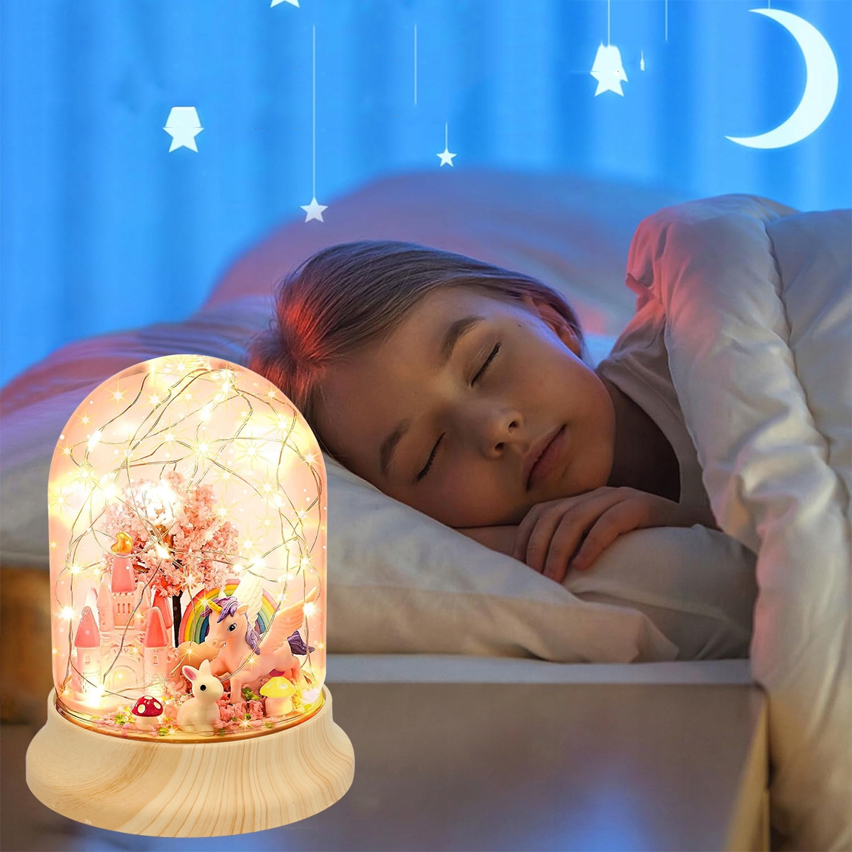 Набор «Сделай сам» для детей - игрушка-единорог для девочек, подарок для детей 3-10 лет - теплый белый ночник своими руками для детей - деревянная основа - с различными аксессуарами, персонализированный светильник для спальни