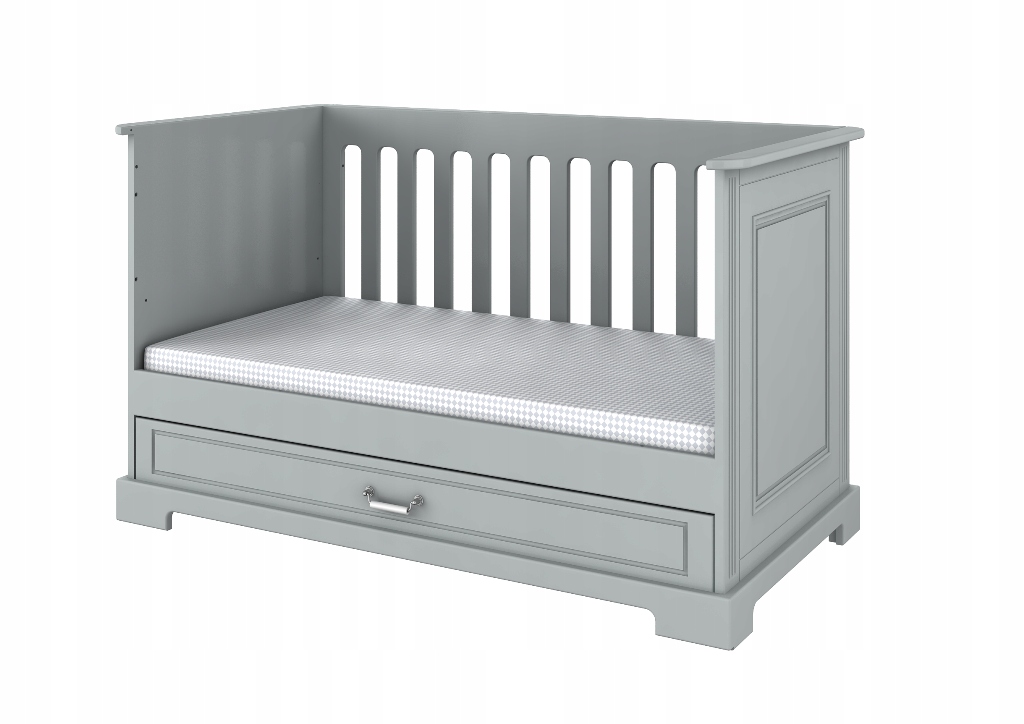 - Кровать 140х70 которая имеет множество практических преимуществ, важнейшими из которых являются: - 3 уровня регулировки высоты кровати - вместительный ящик с бесшумными, самозакрывающимися направляющими - крышка, закрывающая содержимое ящика - после снятия рамы со стороны ящика кровать может служить кушеткой/диваном для ребенка старшего возраста - в комплект входит защитный барьер, предохраняющий ребенка от выпадения после перестановки кровати в кушетку - перила можно установить с правой или левой стороны кровати - на кровать подходит матрас размерами: 140х70 <ли> Комод оснащен 3 глубокими ящиками. Это просто и функционально. <ли> Пеленальный столик крепится на комод и может быть демонтирован, когда ребенок подрастет. Основные преимущества: - удлиняет поверхность верха комода, благодаря чему ребенок во время ухода лежит лицом к родителям, - родители поддерживают зрительный контакт с ребенком во время ухода, - средства по уходу находятся в пределах досягаемости, - ограничительные края защищают ребенка от выпадения, - легкая сборка и разборка.