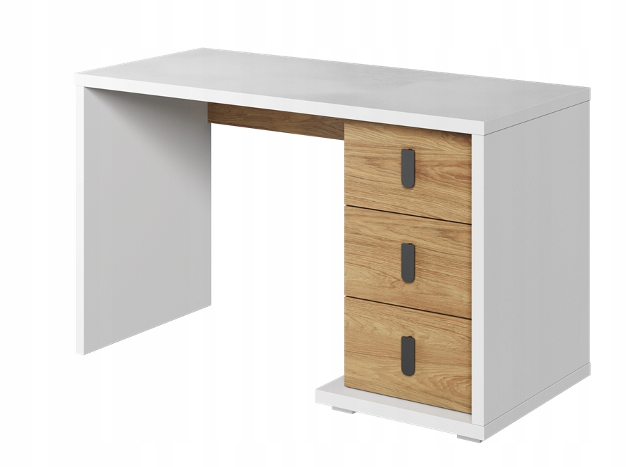 Учитывая потребности маленького школьника, коллекции пополнились функциональным столом. Расположение трех ящиков позволит вам легко хранить школьные принадлежности. От устаревшей выдвижной полки для клавиатуры отказались в пользу более визуально привлекательных решений. Широкая столешница, выполненная в нежном белом оттенке, сделает время, проведенное за письменным столом, легче и приятнее