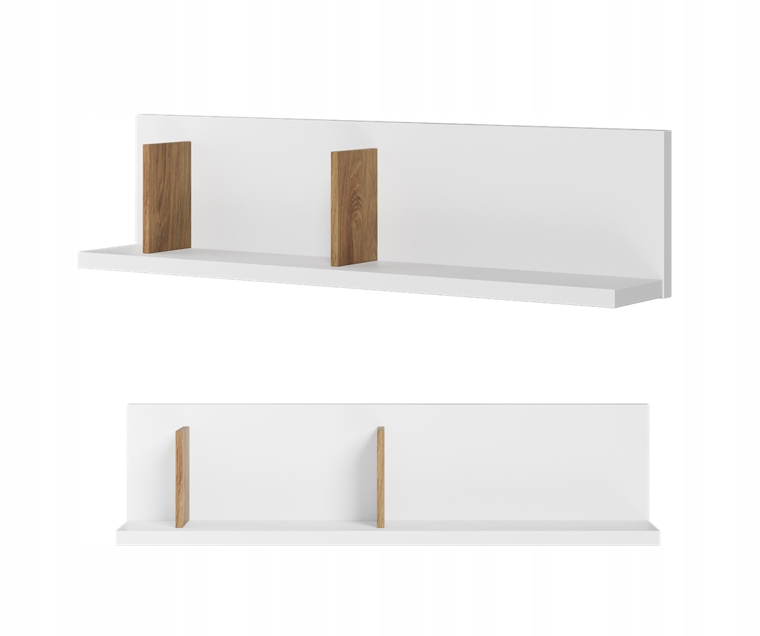 Чтобы обогатить обустройство комнаты, стоит задуматься о приобретении подвесной полки, которая станет украшением стены. Структура дополнена двумя вставками интересного цвета дуба. Это решение оценят книголюбы, которые боятся, что книги будут постоянно падать.