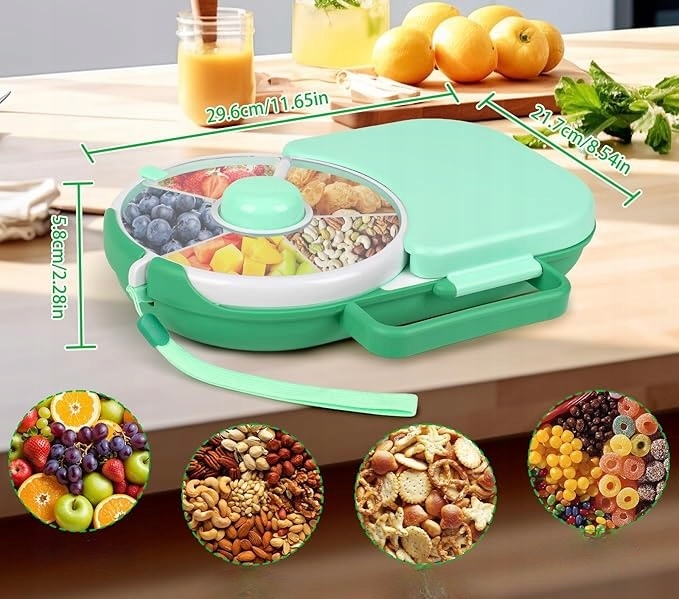 - Многофункциональная закуска спиннера: сделайте свой обед проще благодаря нашему ланч -боксу с закусочной, в которой есть 5 отсеков с интерактивной кнопкой. Постоянные закуски для детей предлагают пространство для различных закусок, фруктов, сухофруктов и т. Д. Используйте путешественника для малышей, чтобы увеличить разнообразие, делать сбалансированную пищу развлечься и побудить детей пробовать новые блюда в забавном, беззаботном способе.
