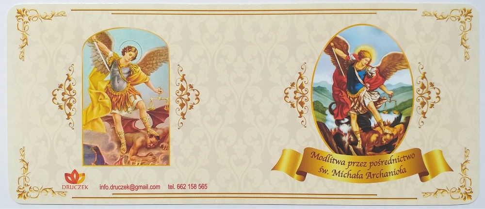 Набор, содержащий головоломки с изображением святого. Архангел Майкл, бумажная вкладка с изображением Святого Архангела Майкла и молитвы на обороте и маленькой деревянной десять розария в светом цвете