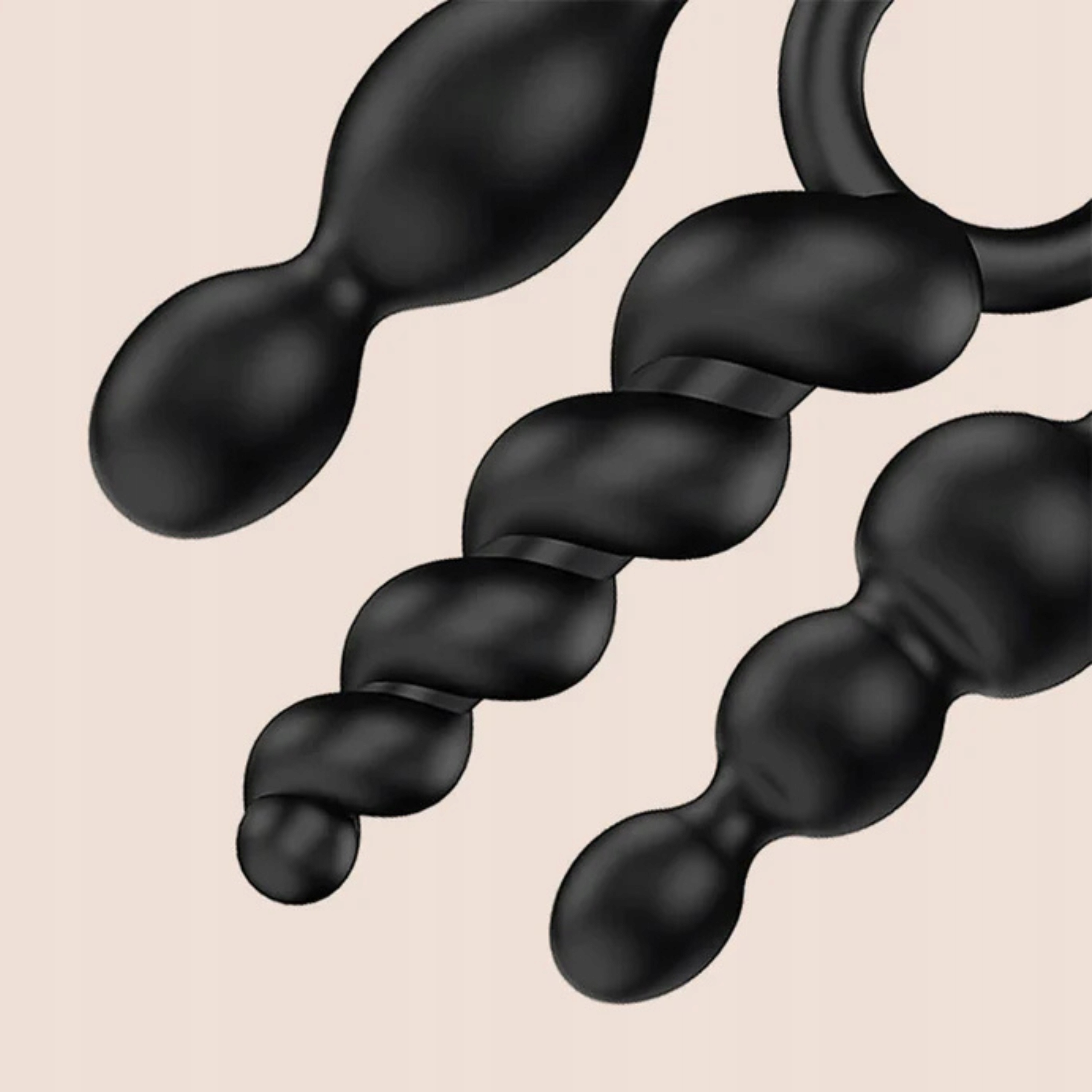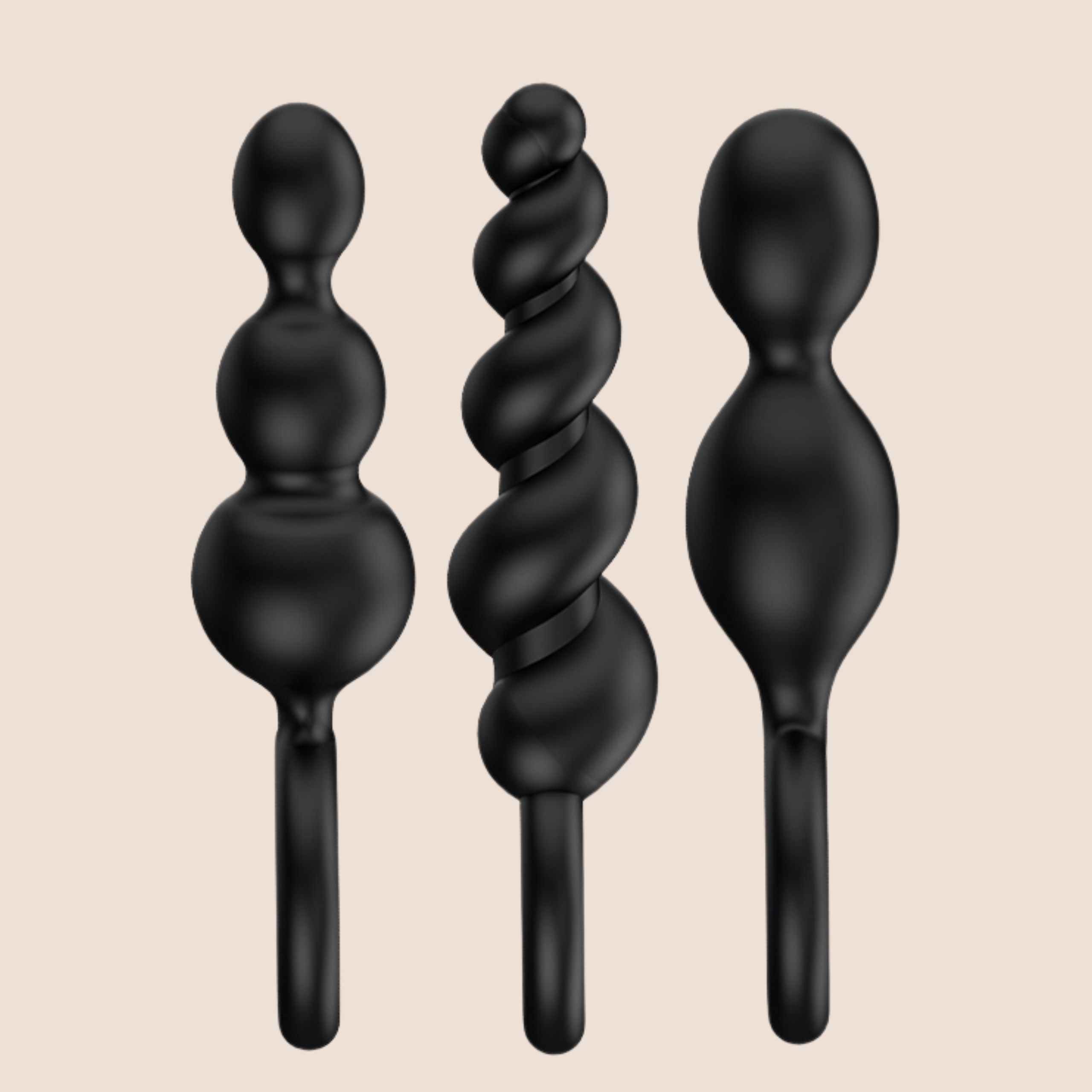 - 3 силиконовые анальные пробки в наборе - различных форм и размеров (конические, бусины, волнистые)
