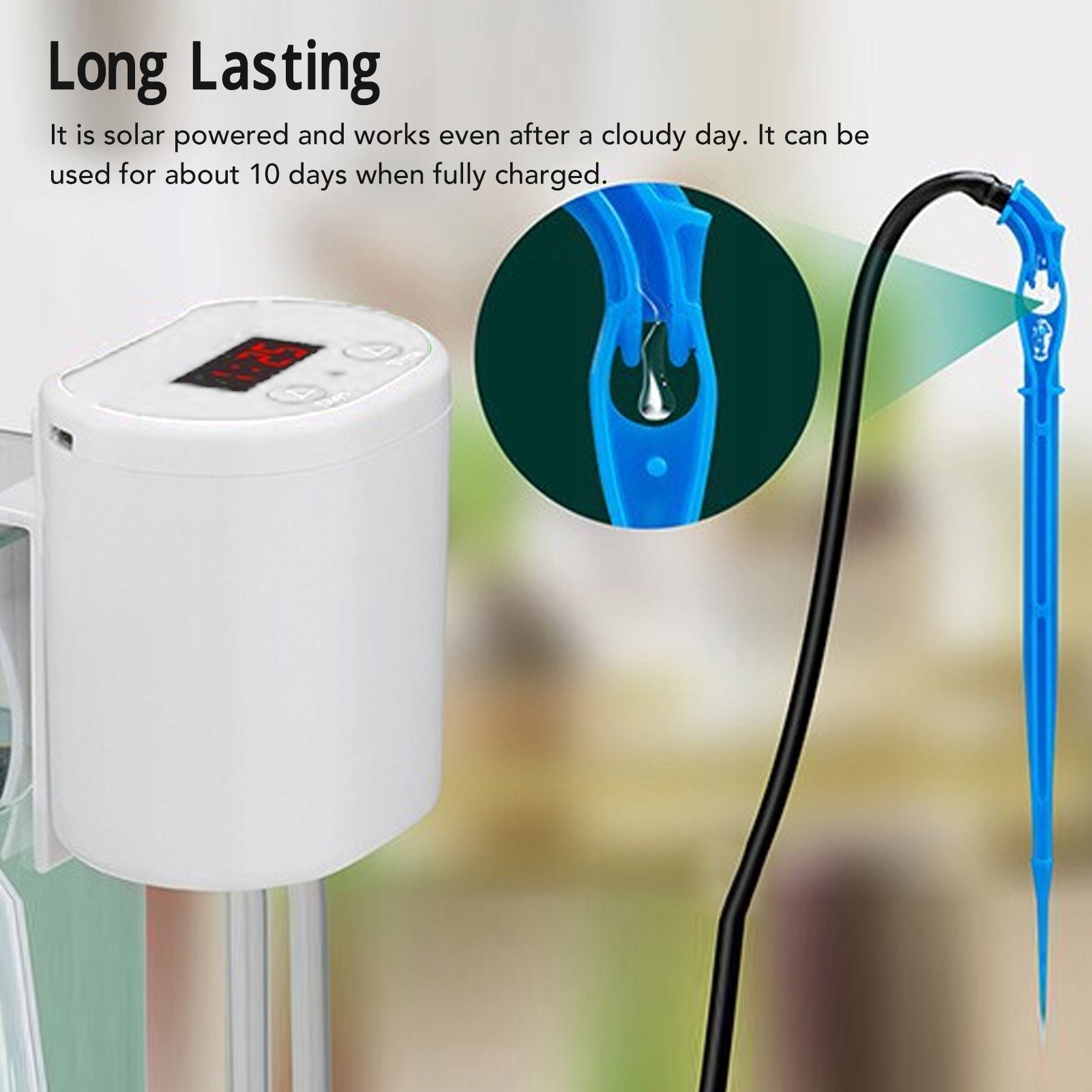 1. Автоматический инструмент для полива растений: он работает на солнечной энергии и может принимать воду непосредственно из контейнера, например ведра, без необходимости использования крана. Он может автоматически поливать растения через заданные промежутки времени и в заданных количествах, а также автоматически подавать сигнал тревоги, когда насос не работает или в контейнере нет воды.
