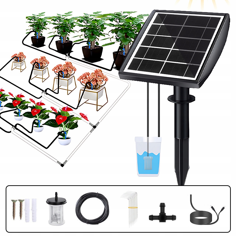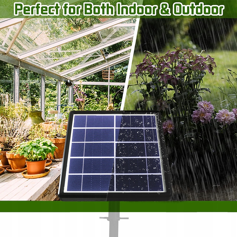 Автоматическая система полива горшечных растений оснащена гибким кронштейном, вращающимся на 180°, который позволяет солнечной панели оптимально поглощать солнечный свет под любым углом. В случае недостаточного солнечного света в пасмурные дни зарядку также можно выполнить через USB. Он может работать даже в пасмурные дни и поставляется с подпоркой для легкой установки в землю или винтами для крепления к стенам или заборам, что делает его эффективным и экологичным решением для полива.