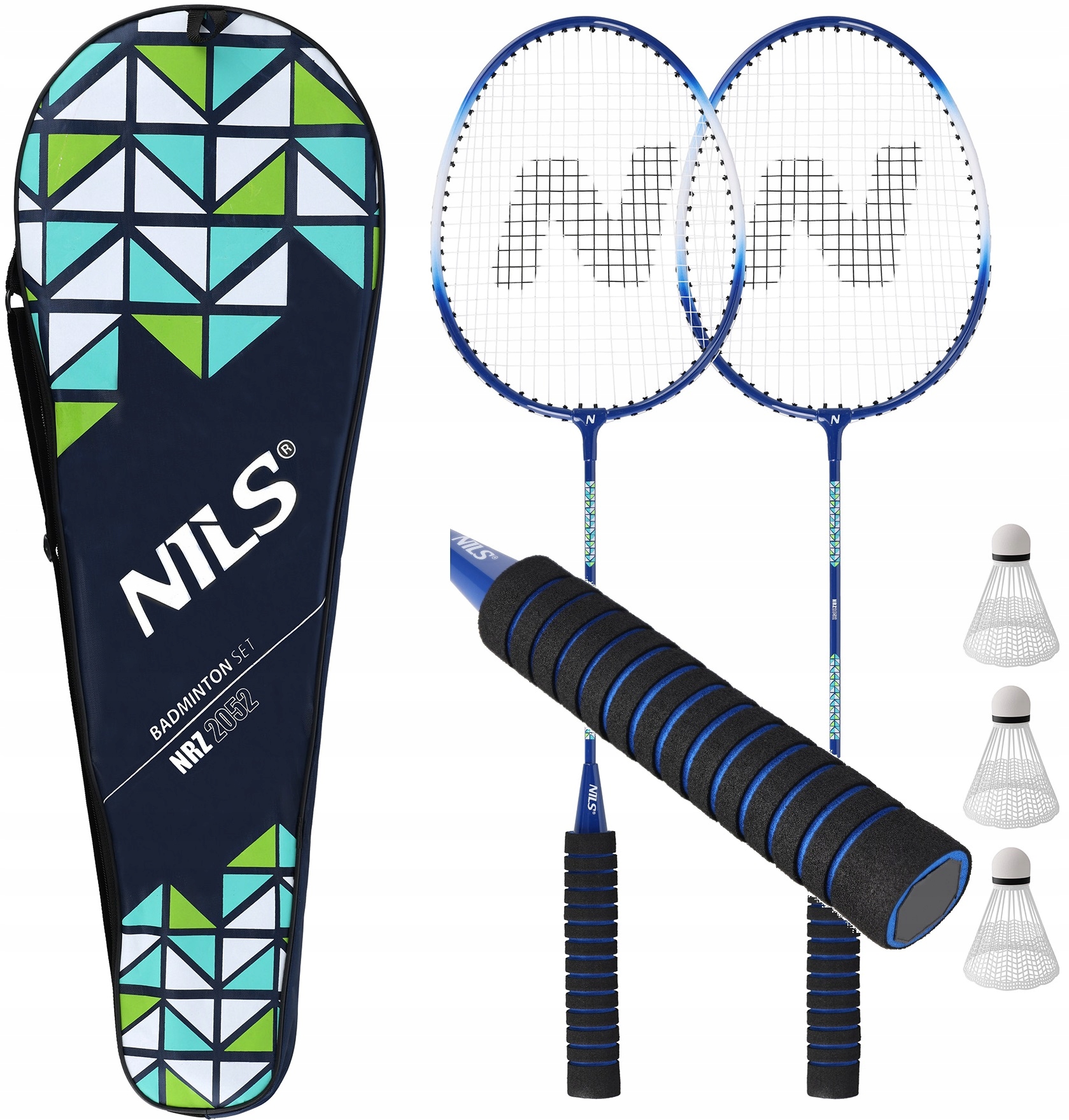 НАБОР ДЛЯ БАДМИНТОНА 2 РАКЕТКИ 3 НЕЙЛОНОВЫХ СТАВНИ СУМКА NILS С КРЫШКОЙ