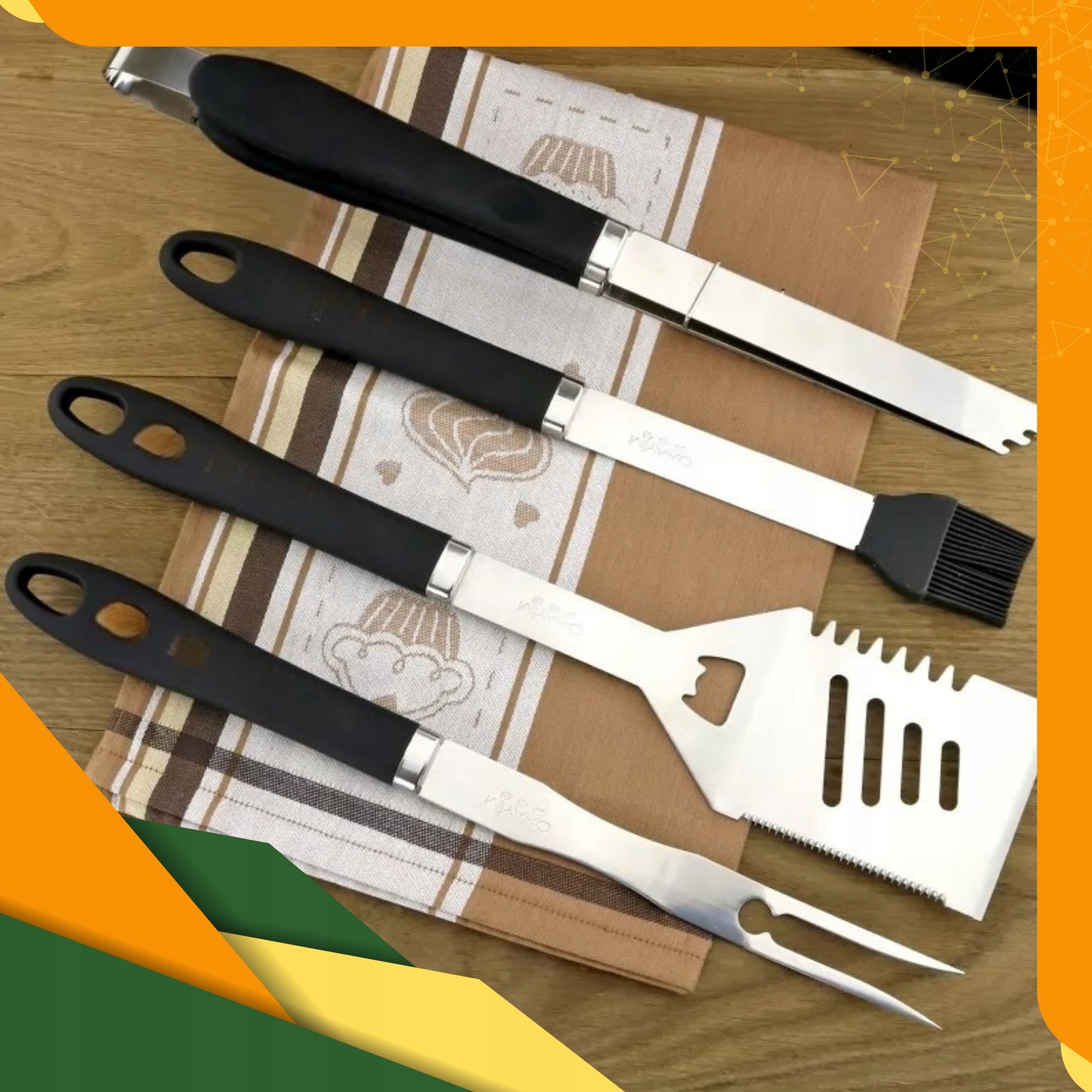 Длинные ручки и не -сластичное покрытие обеспечивают комфорт и защиту от горячих. Сервис инструментов точный и безопасный - даже при интенсивном гриле.