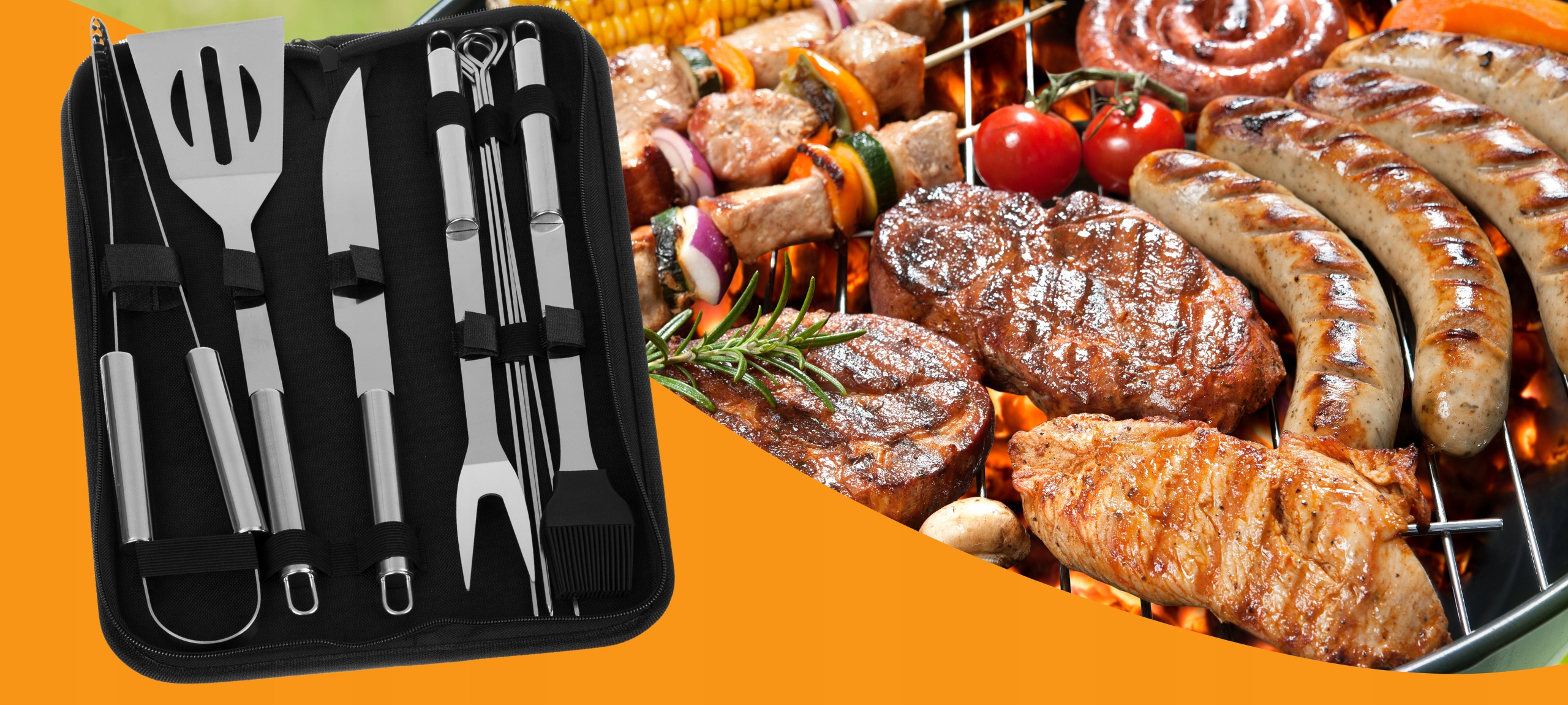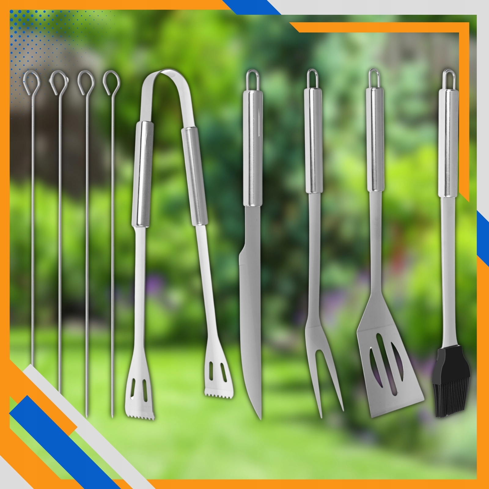 ➡ 9 инструментов в наборе - b> плечо, вилка, нож, плоскогубцы и силиконовая щетка, 4x шампур.