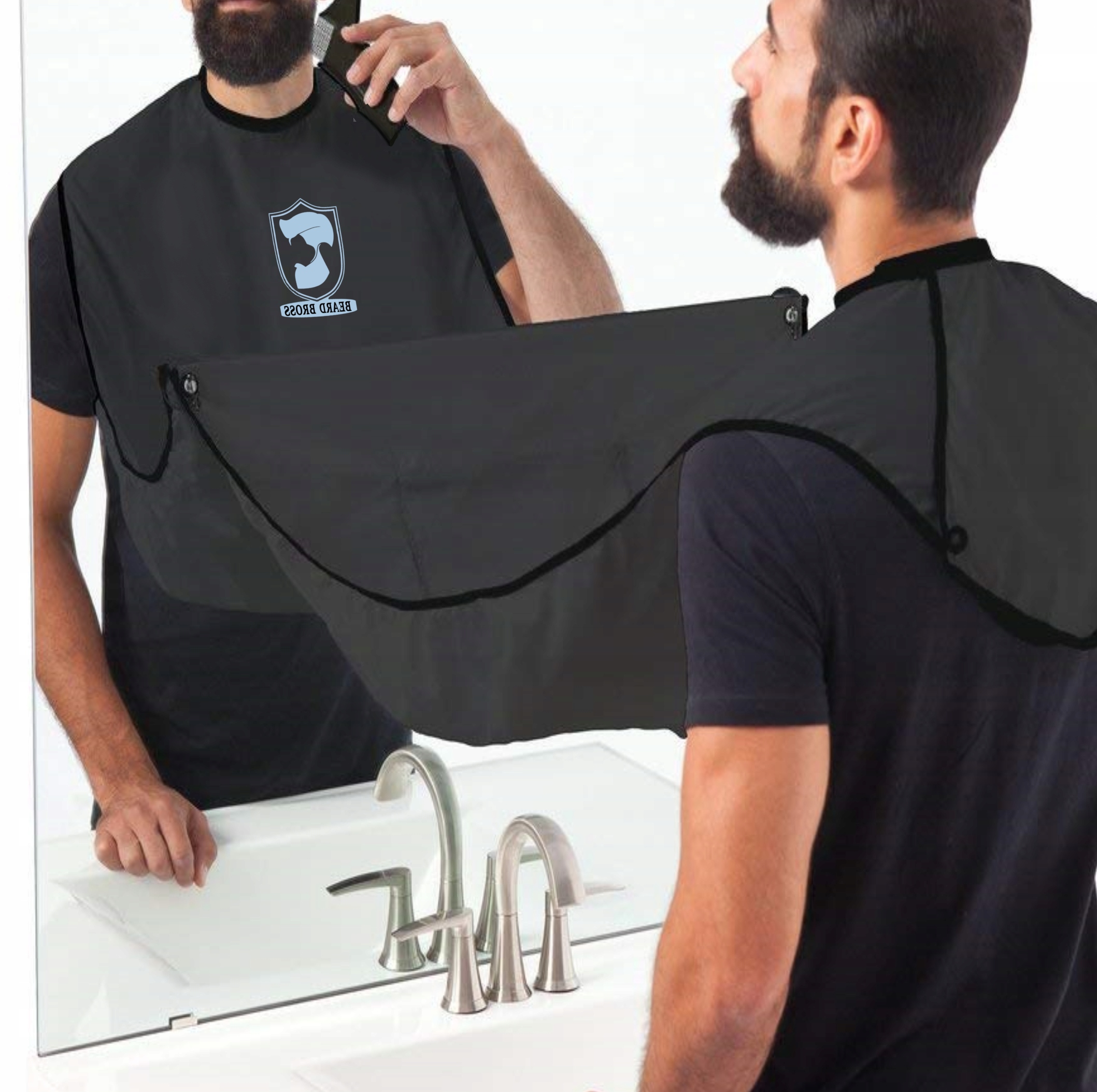 Черная накидка BEARD BROSS — еще один элемент комплекта. Изготовлен из полиэстера, не цепляющегося за волосы, с регулируемой застежкой-липучкой и присоской, он поможет вам сохранить бороду чистой после ухода.