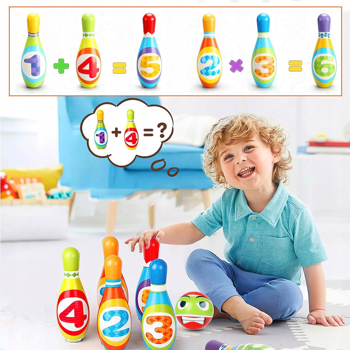 ✴️【Легко играть】 Совершенствуйте свои навыки игры в боулинг. игры с этим набором для боулинга. Бросьте мяч к кеглям, выровняйте их по вертикали, отступите с мячом, прицельтесь и бросьте мяч, чтобы сбить как можно больше кеглей! Сколько кеглей ты сбил? Побеждает тот, кто собьет больше кеглей! Это также может быть так же просто, как нажать на определенный цвет или сложить числа, чтобы увидеть свой результат.