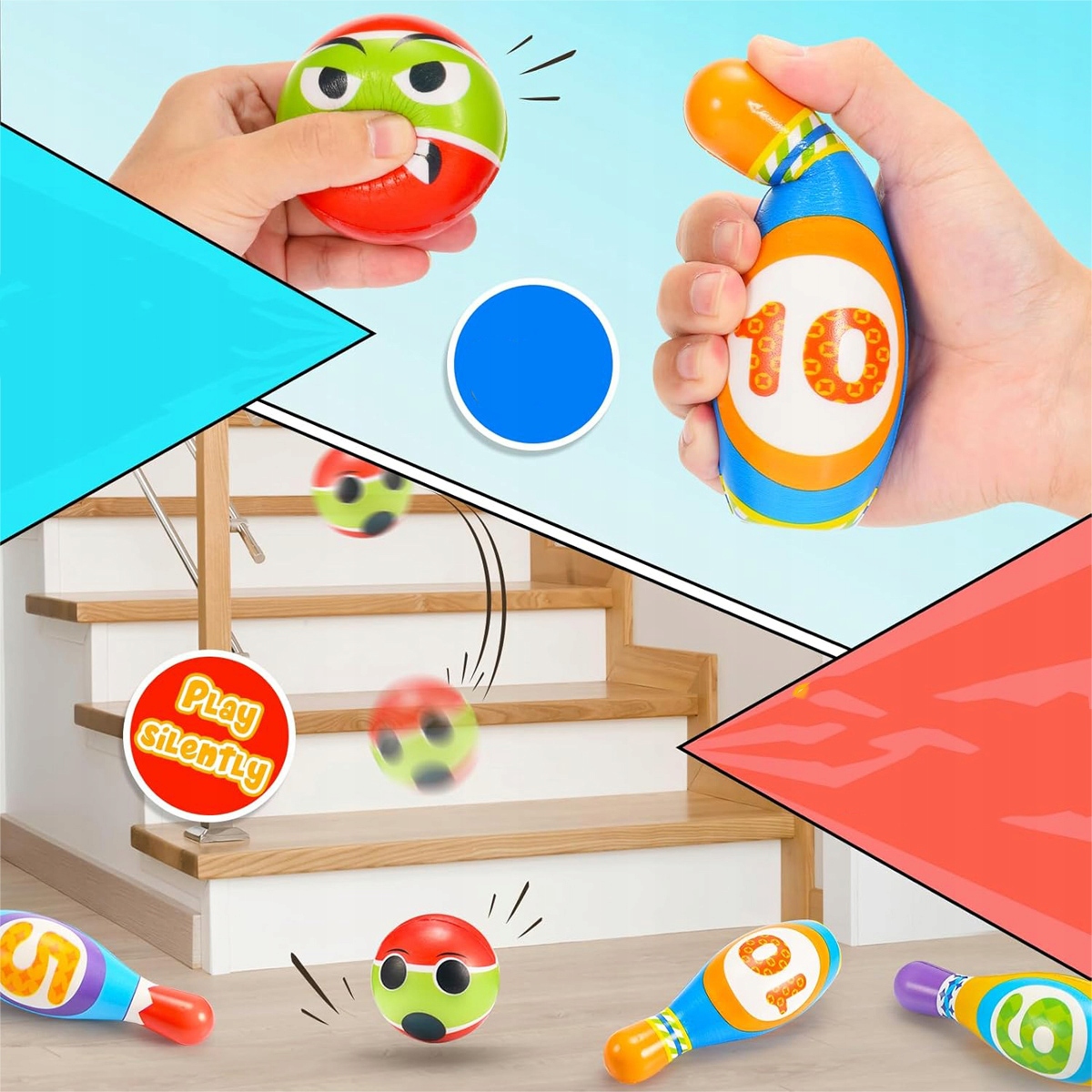 ❤️Набор для боулинга изготовлен из ПУ материала, не издает шума при игре, имеет гладкую поверхность и мягкую текстуру, поэтому вы не вам придется беспокоиться о том, что ваш ребенок пострадает.