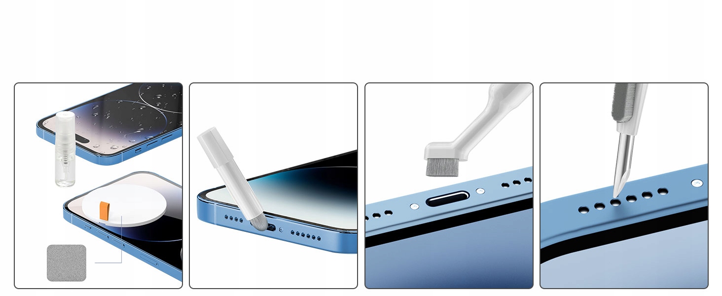 Набор для чистки AirPods 1/2/3, Pro, pro2 и других беспроводных наушников: Металлический зажим очищает липкую и твердую грязь, скрытую между трещиной и отверстием, тщательно очищая зазор.; Плюшевая щетка очищает акустическую сетку от пыли, неглубоких отверстий и трещин; Щетка для чистки загрузочного отверстия очищает от пыли и грязи; Щетка высокой плотности позволяет легко очистить грязь со звукового отверстия наушников и других частей;