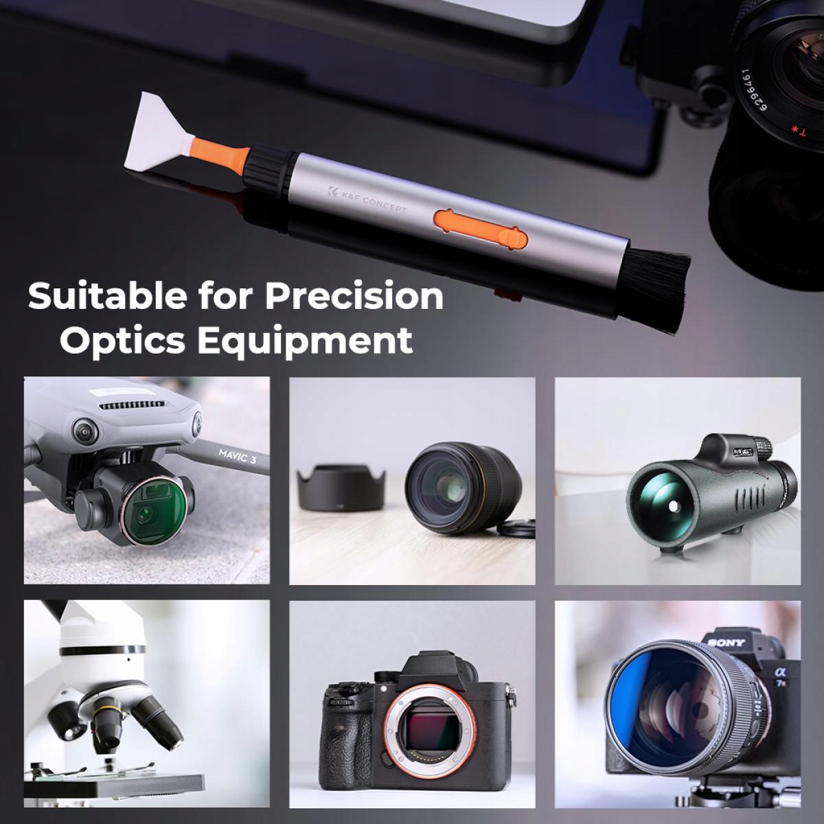 Имеет антистатическую щеточку для удаления твердых инородных тел с оптики.