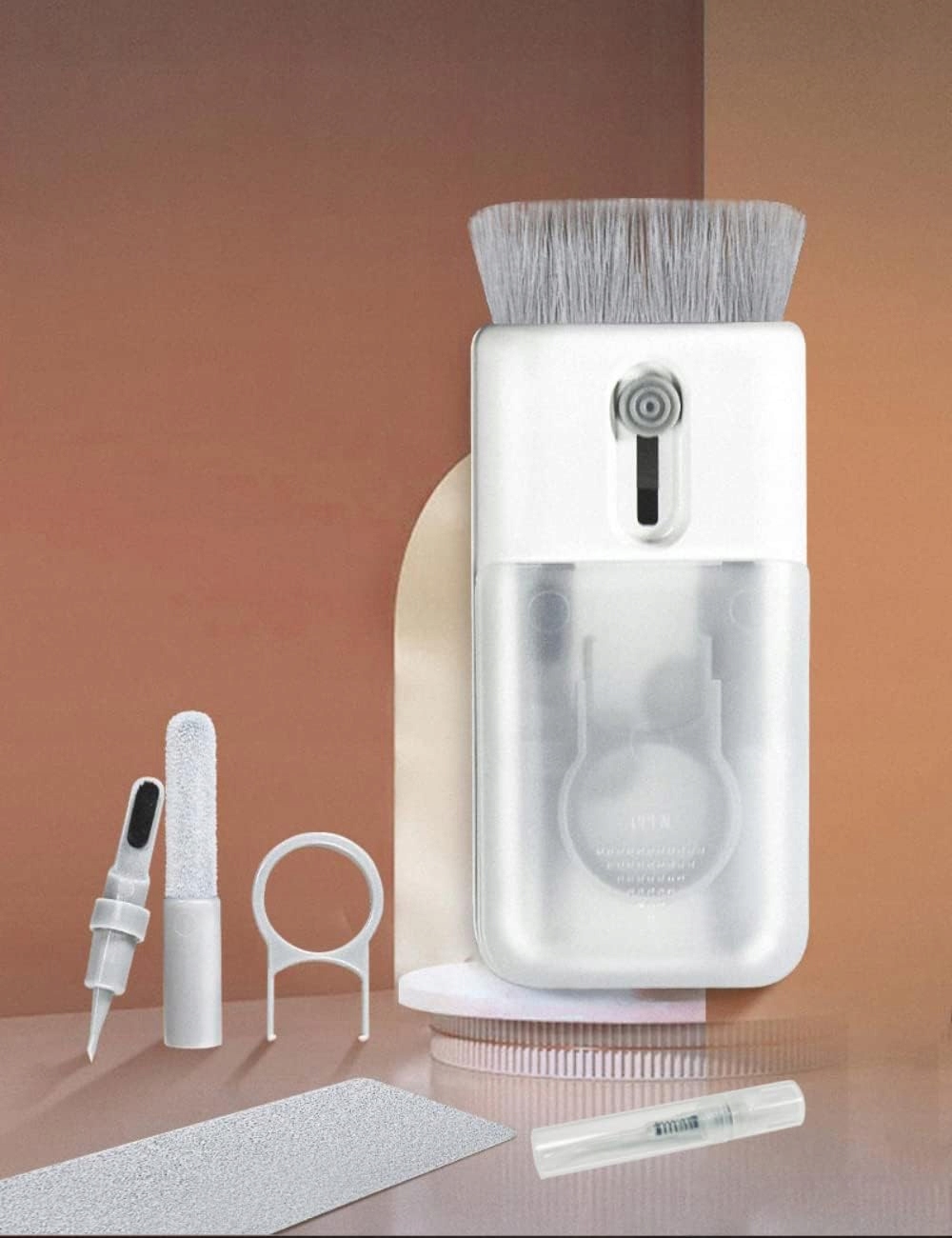 Комплект для очистки для ноутбука клавиатуры. Набор включает в себя все необходимое для эффективной очистки клавиатуры ноутбука и наушников.  щетка для очистки клавиатуры была разработана для многофункциональности и удобства использования, а также для минимизации риска повреждения деликатных поверхностей.