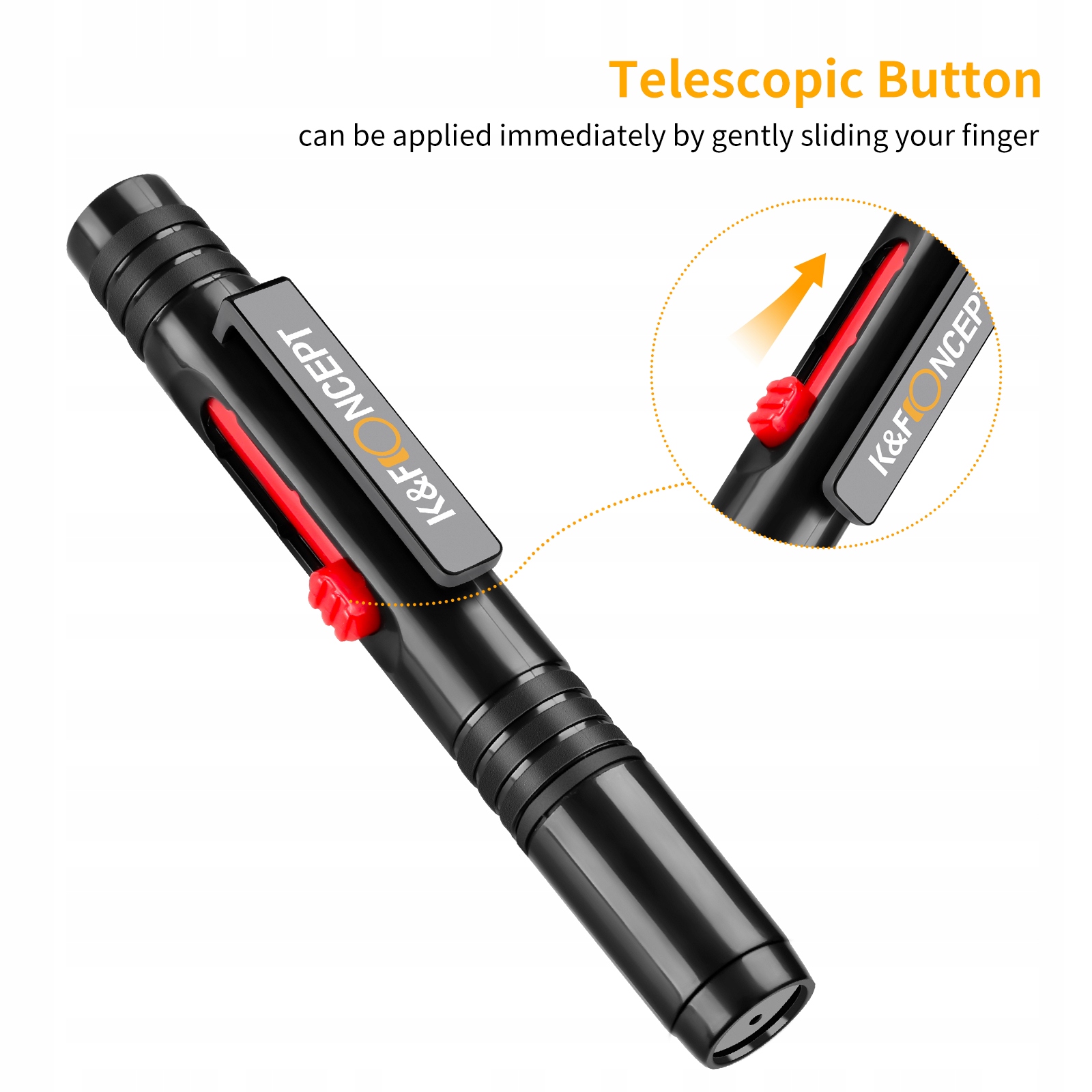 Двусторонняя чистящая ручка. С одной стороны он имеет мягкую выдвижную щетку для удаления пыли и другой рыхлой грязи, а с другой - двойной наконечник - круглый или треугольный со специальным угольным чистящим компонентом для легкого удаления пятен, отпечатков пальцев и т. д.