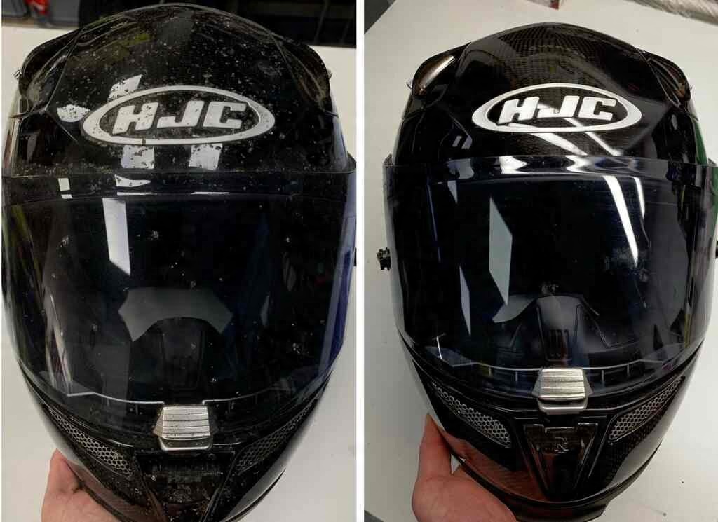 Применение препарата чрезвычайно просто. Равномерно распределите по поверхности шлема с помощью специального аппликатора. В случае стойких загрязнений оставьте гель на некоторое время, а затем удалите грязь мягкой тканью из микрофибры. Он работает быстро и эффективно, поддерживая состояние шлема и обеспечивая кристальную чистоту визора.
