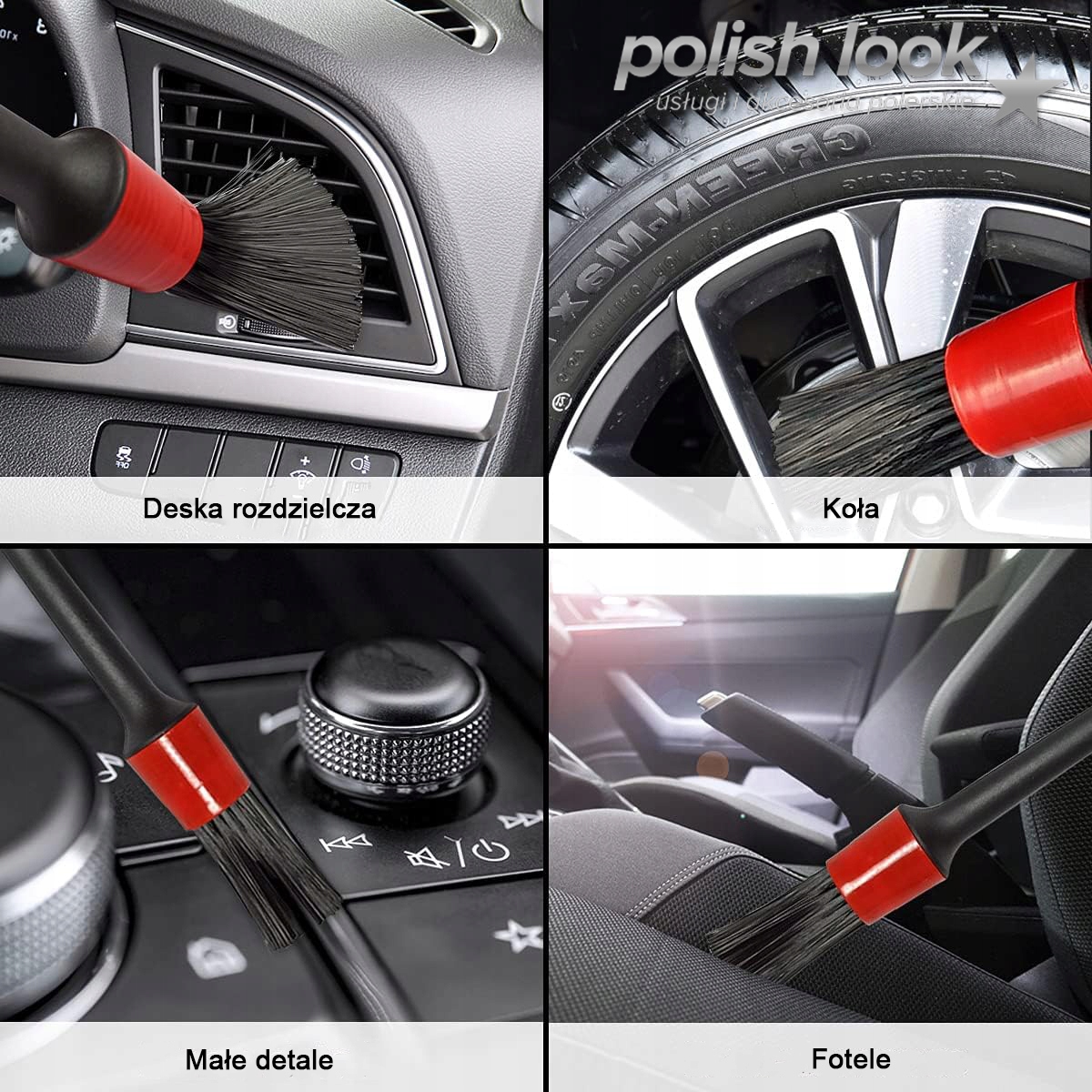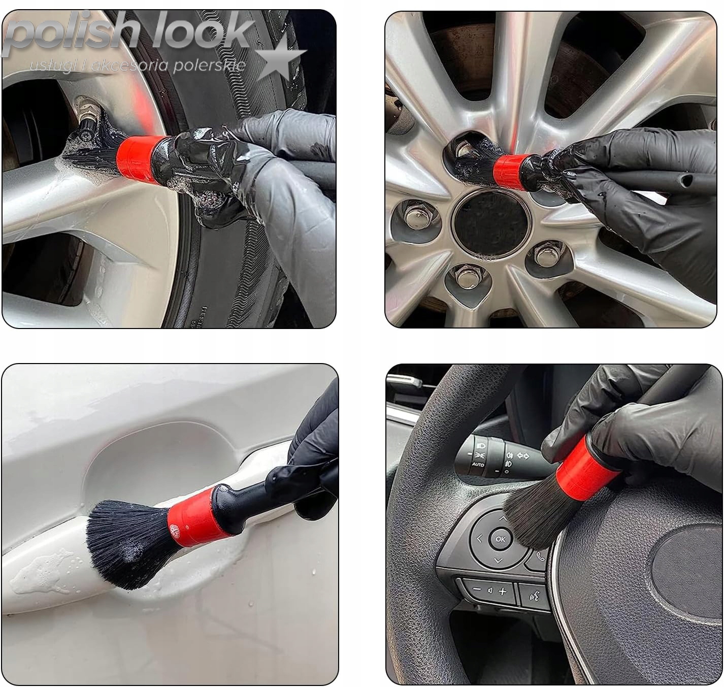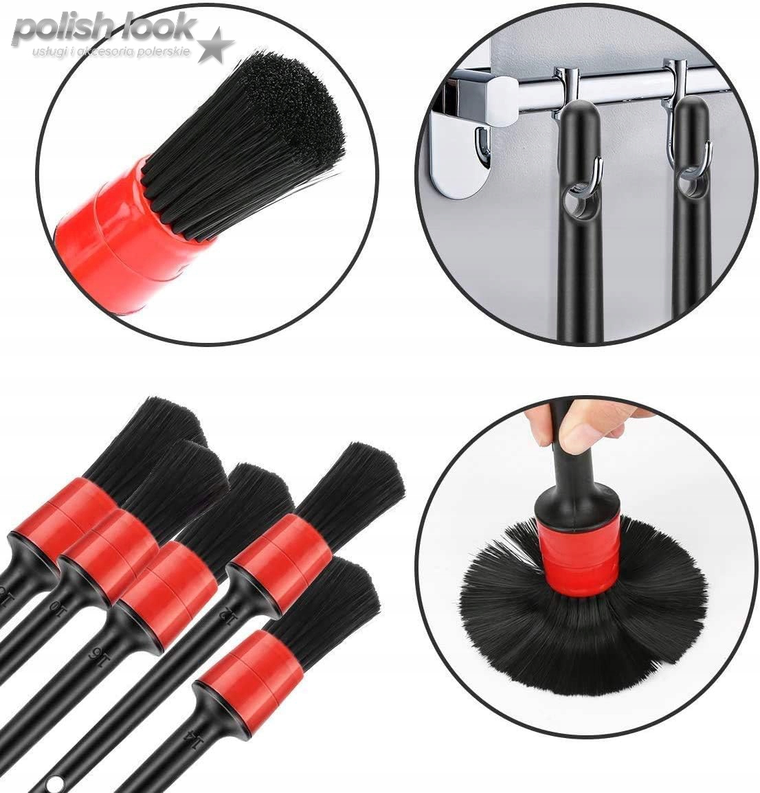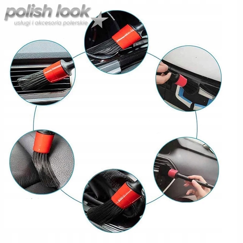 Набор из 5 кистей для детейлинга обеспечивает точность и долговечность благодаря синтетическому ворсу.