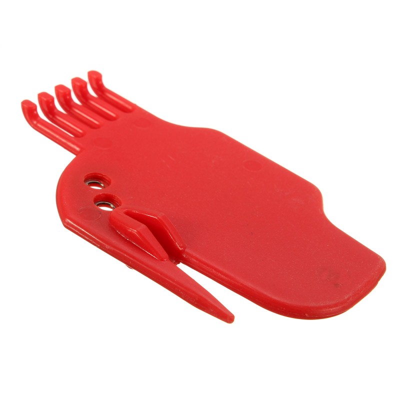 Плоский инструмент для чистки кистей, помимо пластиковых зубцов, имеет дополнительное лезвие, позволяющее срезать намотавшиеся на кисти волосы