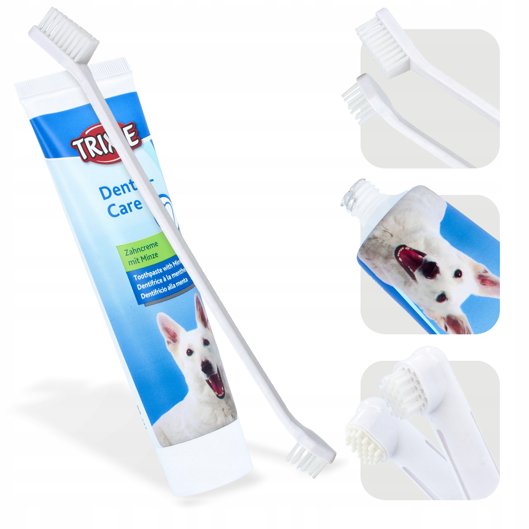 Набор зубных щеток — аксессуар, который должен быть у каждого владельца собаки. Двусторонние маленькие кончики позволяют дотянуться до каждого уголка рта собаки. Подушечки пальцев позволяют массировать десны и приучают собаку к чистке зубов.
