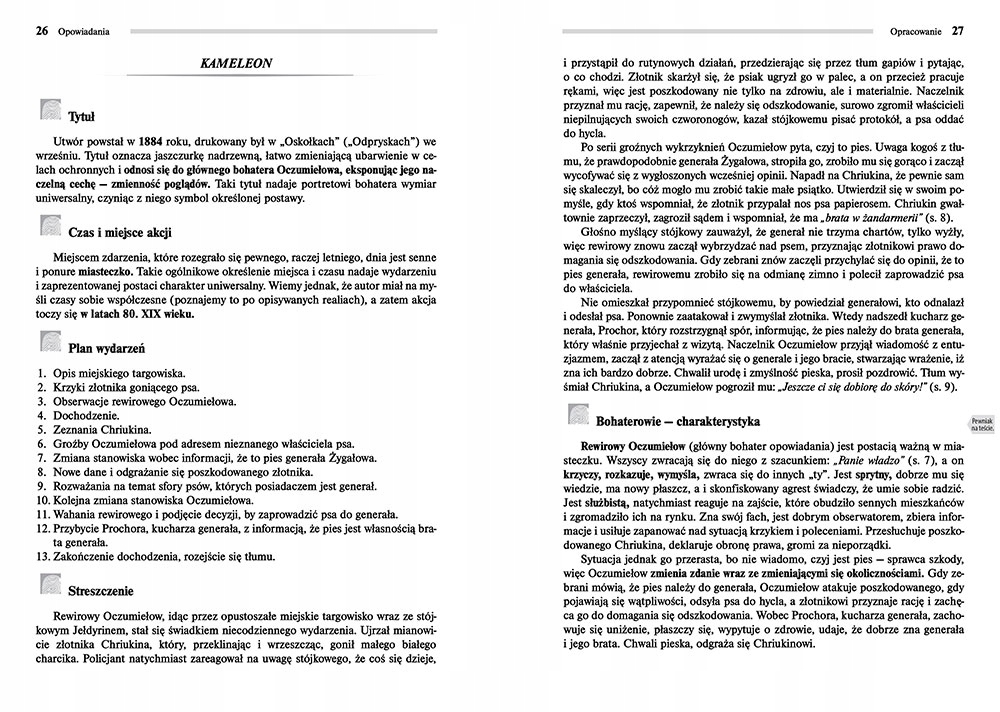 Издание книг Смерть клерка, Хамелеон и Человек в футляреполное без каких-либо сокращений и сокращений содержания. В этом издании вы найдете ответы на вопросы из учебника - «верное на контрольной», т.е. указание на вопросы, которые обычно возникают в вопросах из данного чтения во всех проверках знаний, а также в учебниках и классных контрольных работах. Книга содержит полный текст для чтения. В конце книги есть исследование с очень подробным изложением и еще одно краткое, что способствует быстрой подготовке перед уроком. Исследование также содержит план событий, тщательно объясненные проблемы и общие характеристики персонажей.