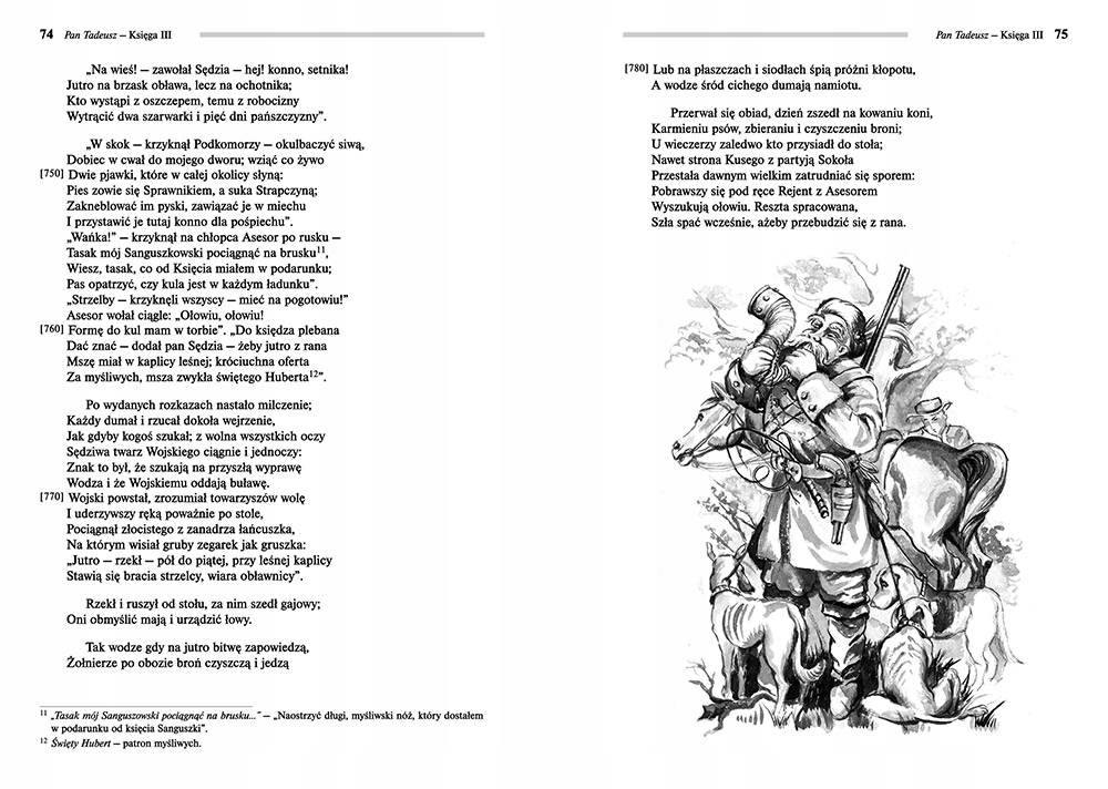 Я давно планировал вернуться в «Пан Тадеуш» и сейчас подходящее время для этого. Очень красивое издание с этюдом я нашла в издательстве GREG, которое очень ценю за ценные книги по хорошей цене (...) Книга имеет твердую обложку и черно-белые иллюстрации, которые придают ей неповторимый характер. Как я уже упоминал, в этом издании есть исследование. Рядом с текстом есть серые рамки, содержащие самую важную информацию. Это облегчает чтение. Нет нужды отмечать на бумажках, например, внешность Телимены или описание прошлого Зоси.