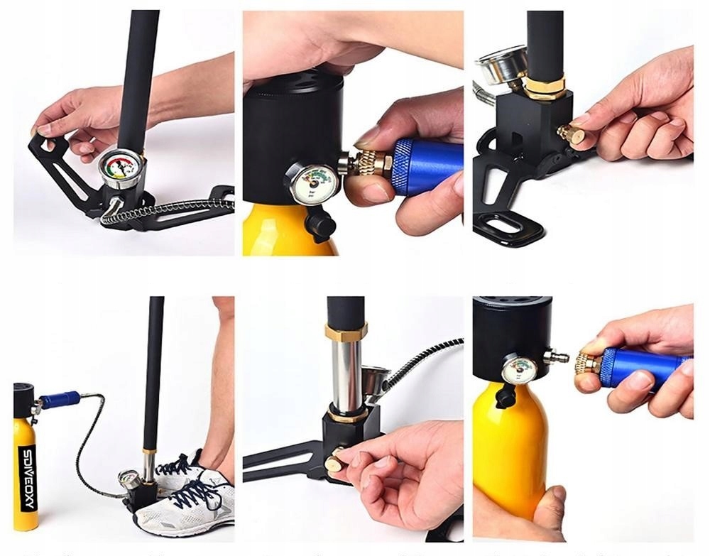 Насос позволяет наполнить баллон без необходимости искать точку для наполнения баллона.