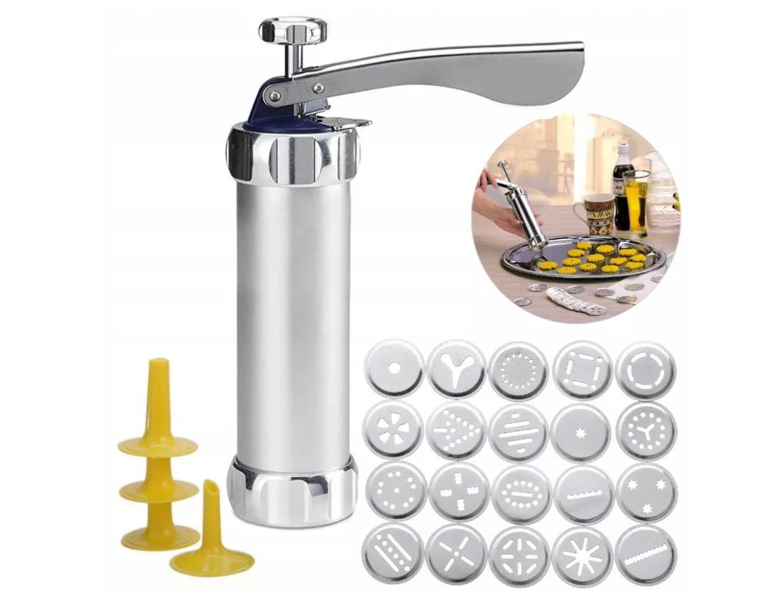 Декоратор имеет 24 различные насадки, с помощью которых можно менять форму крема или печенья. Он оснащен очень удобным прессом и прост в использовании.
