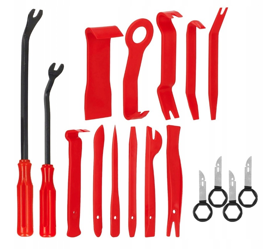 - Инструменты профилированы таким образом, чтобы обеспечить легкий демонтаж обивки, зажимов, планок, стойки и магнитолы без риска повредить поверхность.