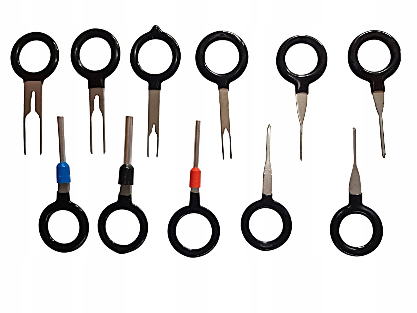 В комплект съемников для обивки входит множество элементов - помимо 12 съемников для обивки имеются еще кусачки, клипсы (22,5 и 31 см), а также радиоэкстракторы, 11 штифтовых ключей и крючки для снятия уплотнителей.