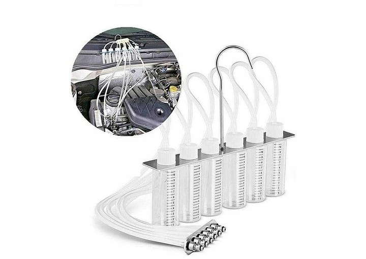 Прибор предназначен для диагностики форсунок дизельных двигателей. двигатели максимум с 6 цилиндрами, оснащенные системой подачи топлива Common Rail. Он позволяет легко и быстро проводить диагностику форсунок на основе измерения количества топлива, сбрасываемого при переполнении форсунок. Благодаря этому вы легко сможете обнаружить любые повреждения, загрязнения или утечки в форсунках. Диагностика предполагает подключение тестеров или тест-полоски с помощью соответствующих переходников к переливным магистралям форсунок и сравнение количества топлива, подаваемого отдельными форсунками. Если какая-либо форсунка подает большее или меньшее количество топлива, то она неисправна. Его можно использовать при запуске двигателя или при одновременной работе 6 цилиндров.