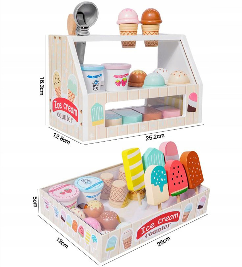 ДЕРЕВЯННЫЙ ОБРАЗОВАТЕЛЬНЫЙ МАГАЗИН-МОРОЖЕНОЕ НАБОР МОРОЖЕНОГО ДЛЯ ДЕТЕЙ 3+, дерево