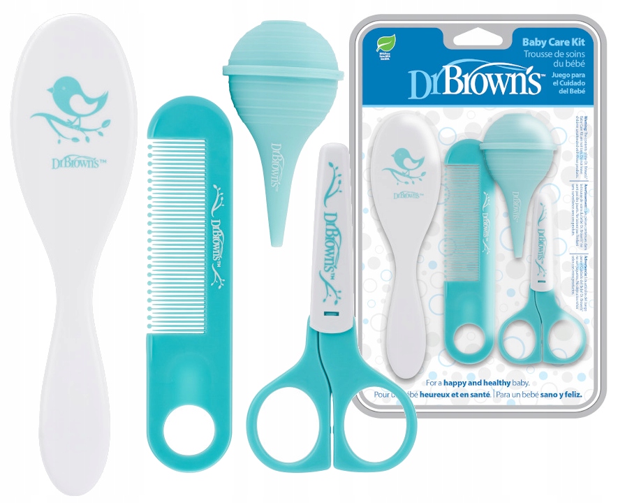 Позаботьтесь о здоровье вашего малыша с набором для ухода за ребенком Dr Brown. В набор входят щетка, расческа, аспиратор и ножницы.