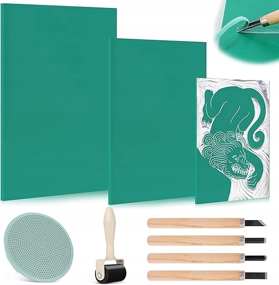НАБОР ДЛЯ ПЕЧАТИ ЛИНОгравюры A4/A5/A6 - 9 ЭЛЕМЕНТОВ, ШТАМПЫ И МЯГКАЯ РЕЗИНА
