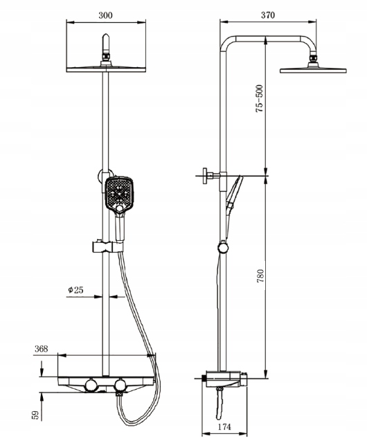 Термостатическая система душа BS371 в элегантном белом убедит вас благодаря многим функциям и вариантам. Полная система включает в себя шланг для душа, насадку для душа и дождевой душ.
