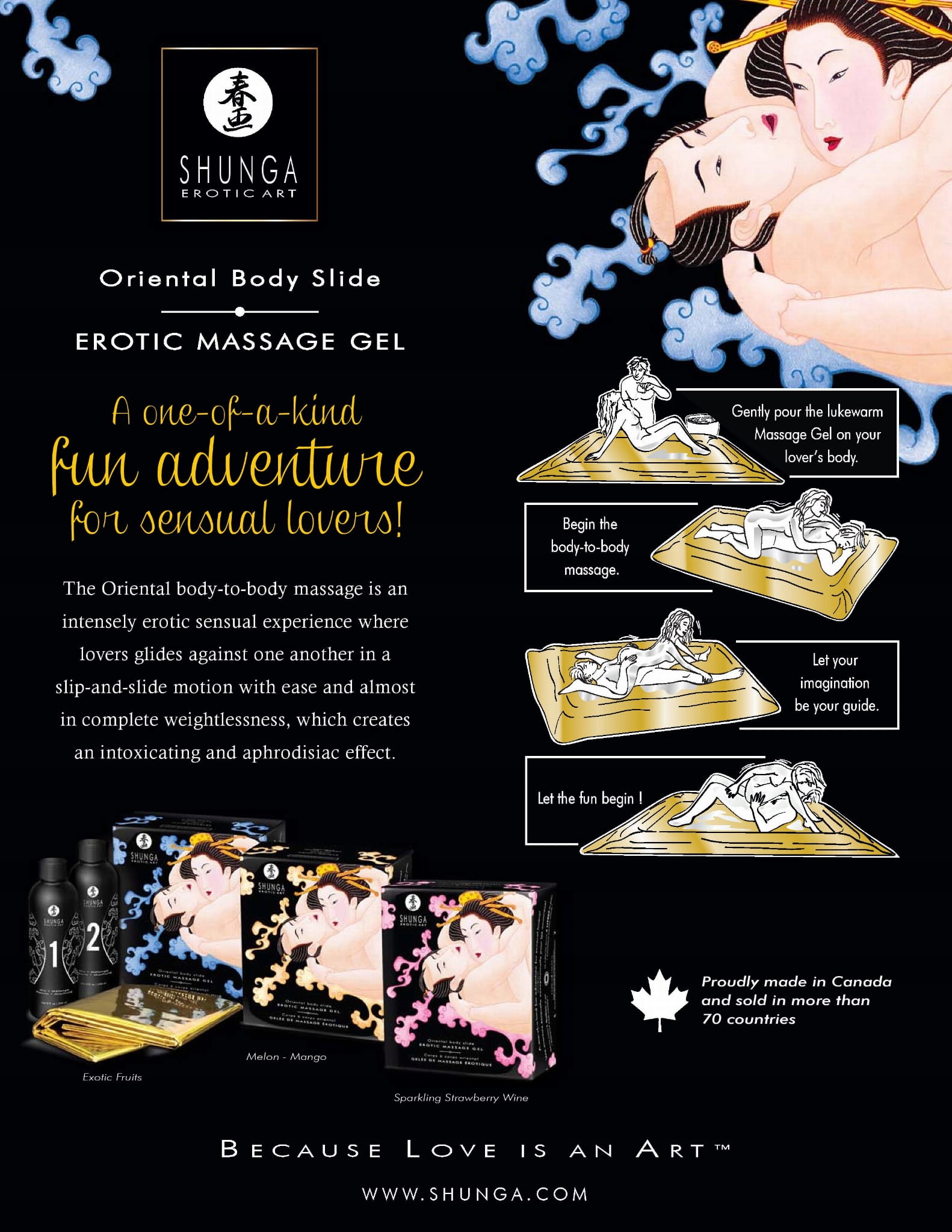 У каждого человека есть желания, которые он хотел бы удовлетворить, а также эротический потенциал, который он хотел бы раскрыть. Именно поэтому был создан Shunga, канадский бренд специализирующийся на производстве косметики высочайшего качества для улучшения качества сексуальной жизни.