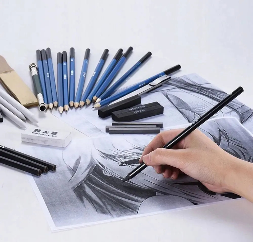 - 12 карандашей для эскиз (2H / 3H / 4H / 5H / HB / B / B2 / B3 / B4 / B5 / B6 / B8)