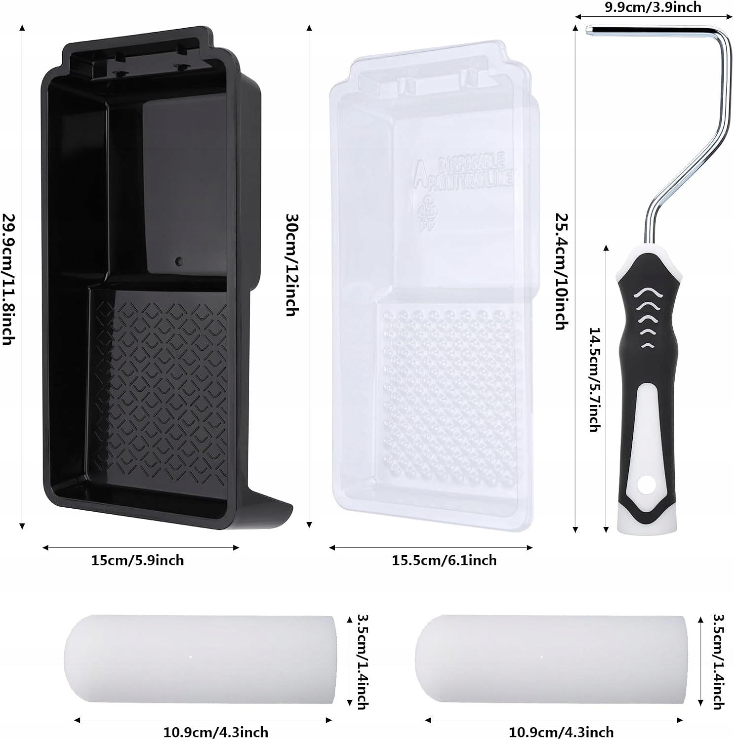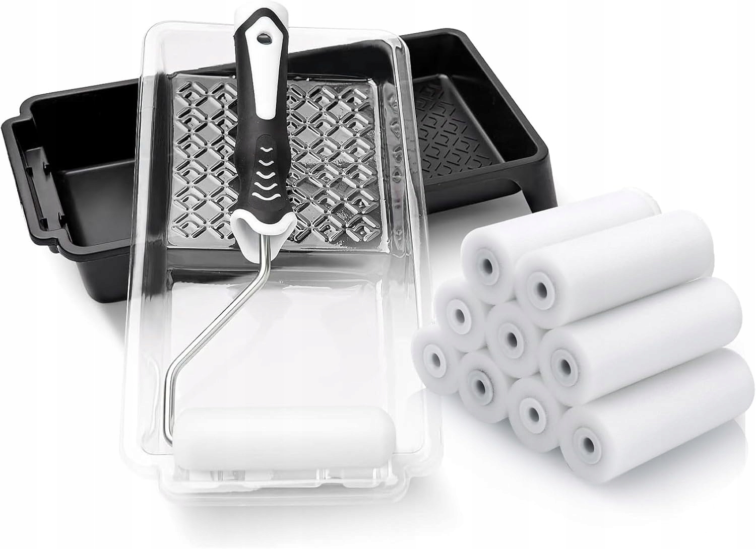 Набор малярных валиков: В комплект входят: малярный валик из пенопласта высокой плотности размером 11 x 10 см, устойчивый лоток для краски x 1, одноразовый лоток для краски x 3 и подставка для малярных валиков x 1. Содержит большинство инструментов, необходимых для рисования.