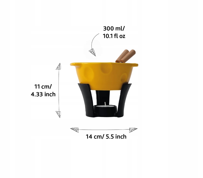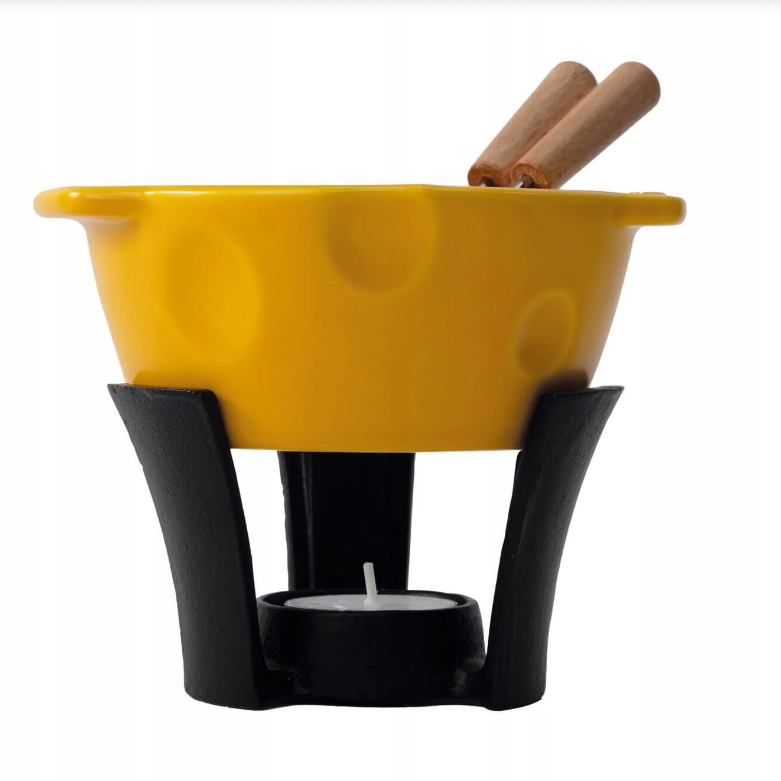 Применение: Набор идеально подходит для сырного фондю, а также для сладких версий – с шоколадом и фруктами. Казан сохраняет пищу теплой, а нагреватель обеспечивает соответствующую температуру на протяжении всего использования.