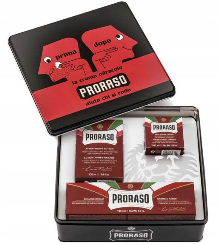 Все они имеют коробки, стилизованные под старинный графический дизайн Proraso!