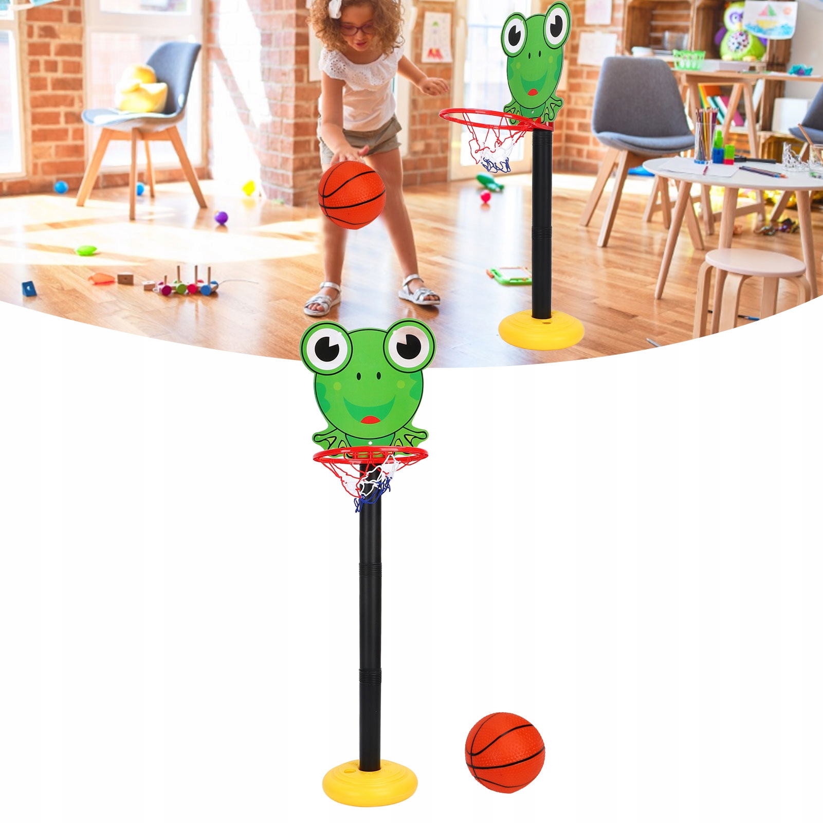 3. Мультяшный внешний вид: баскетбольный набор имеет мультяшную лягушку, которая привлекает внимание детей и позволяет им выполнять больше упражнений.