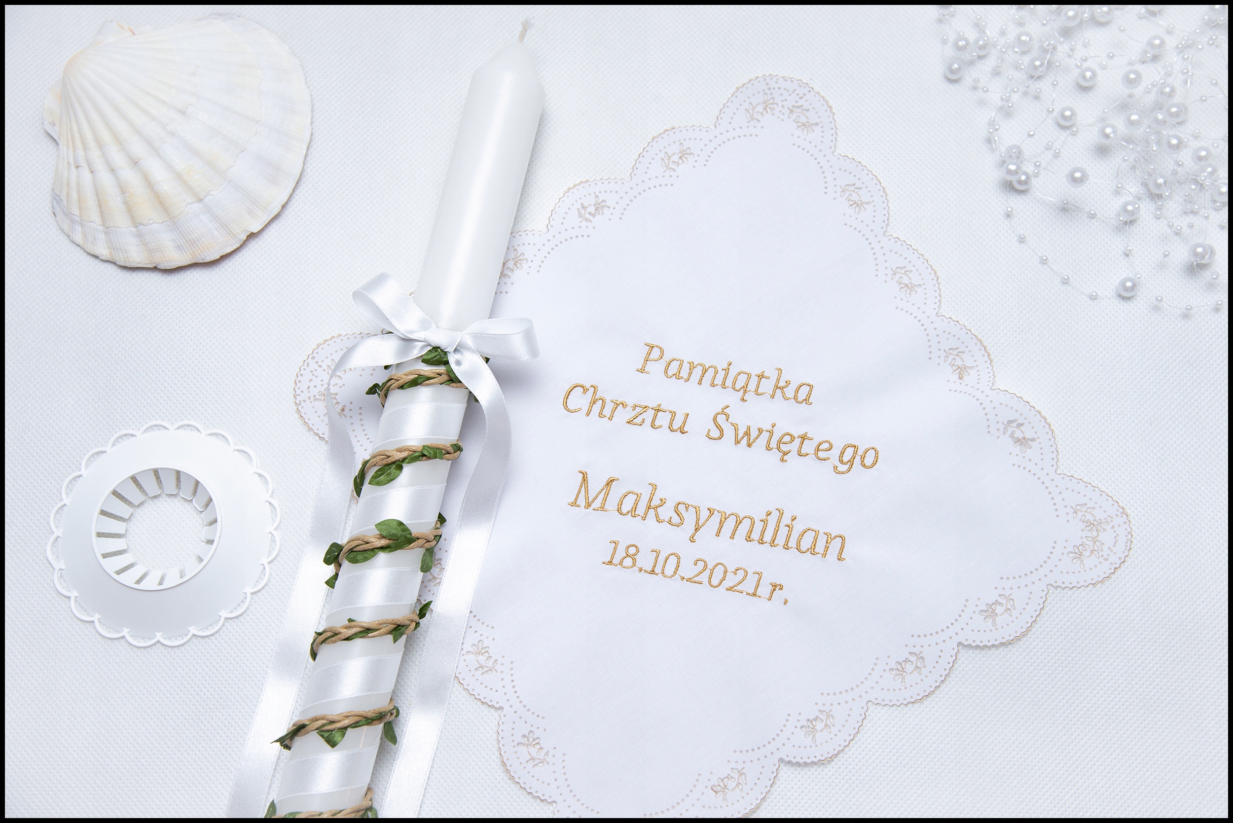 Набір для хрещення, ОДЯГ З ВИШИВКОЮ, свічка для хрещення