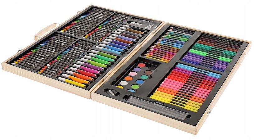 НАБОР ХУДОЖЕСТВЕННОЙ РИСУНКИ, ДЕРЕВЯННЫЕ КРАСКИ + КРАСКИ, СЕНСИЛИ, МАРКЕРЫ В ЧЕМОДАНЕ