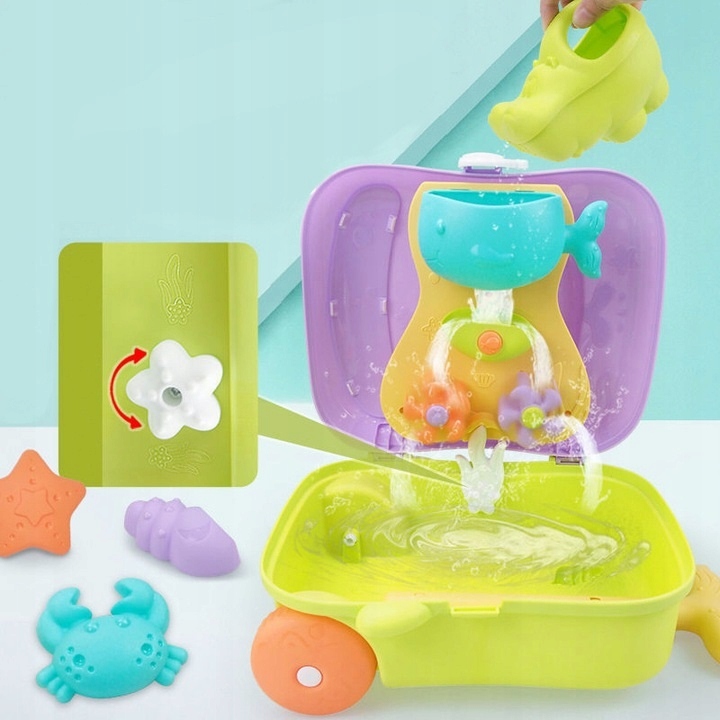 Набор 3 в 1 - все упаковано в чемодане с игрушками для песка и игрушкой для воды. Доставляет массу удовольствия на многие часы!