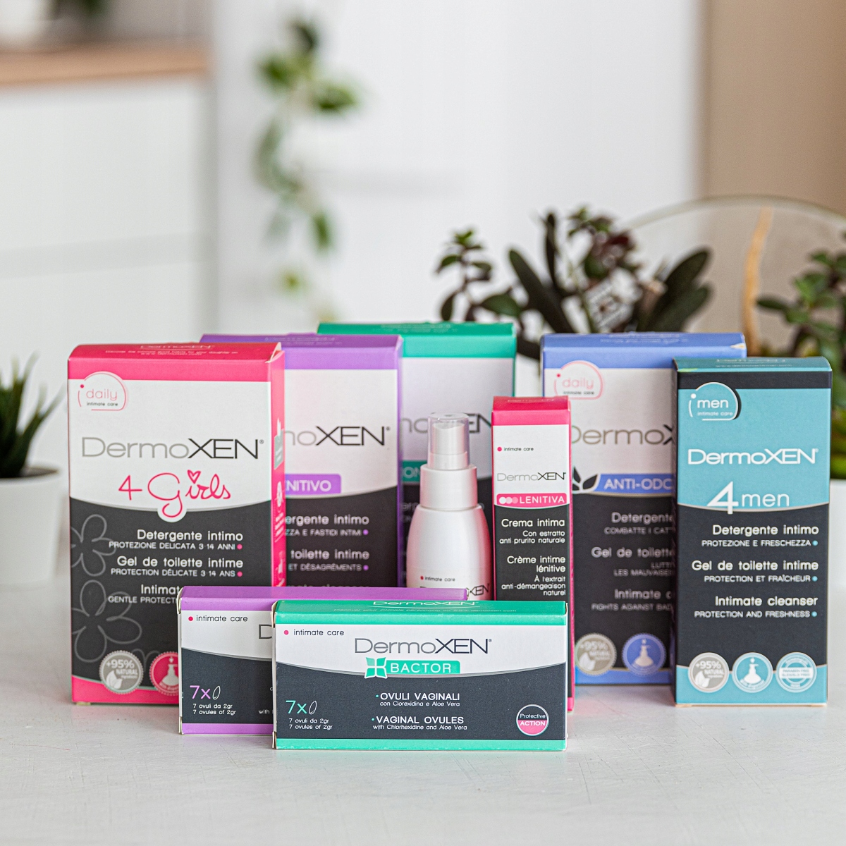 DermoXEN — линия продуктов, специально разработанная для ежедневной интимной гигиены и ухода, предназначенная для женщин с детского возраста до фертильного возраста и менопаузы, обеспечивающая соответствующий физиологический pH интимных частей тела благодаря инновационным, специфичным и абсолютно безопасным формулам даже для самой чувствительной и склонной к раздражениям кожи.